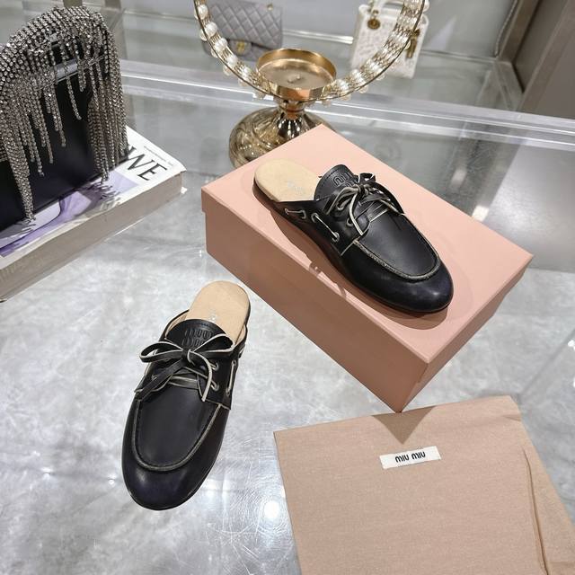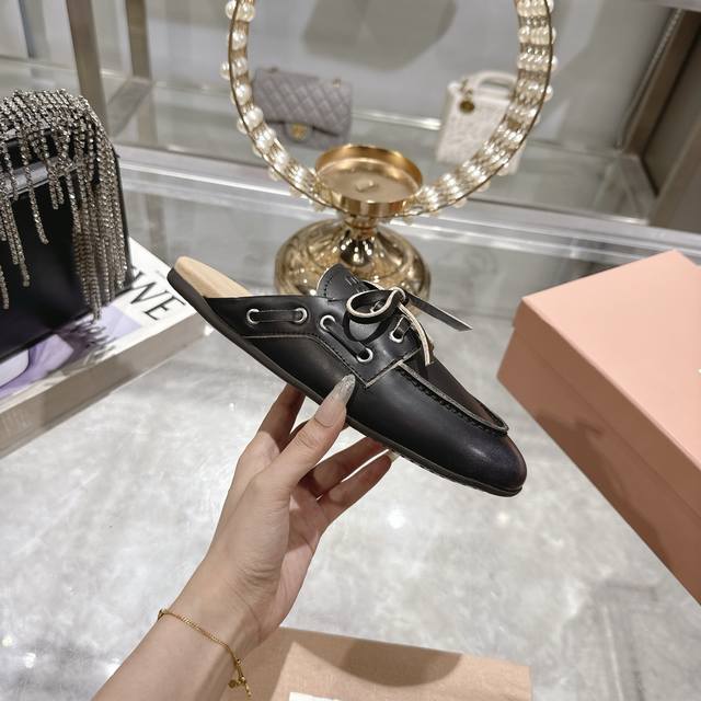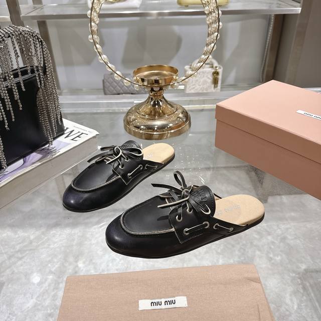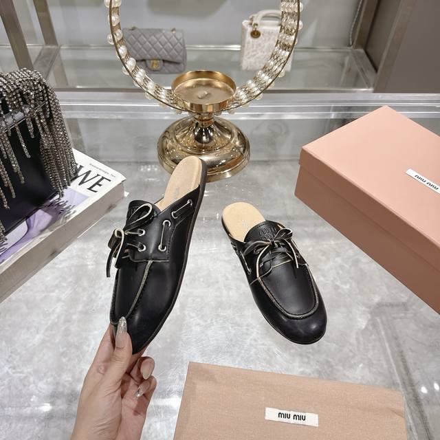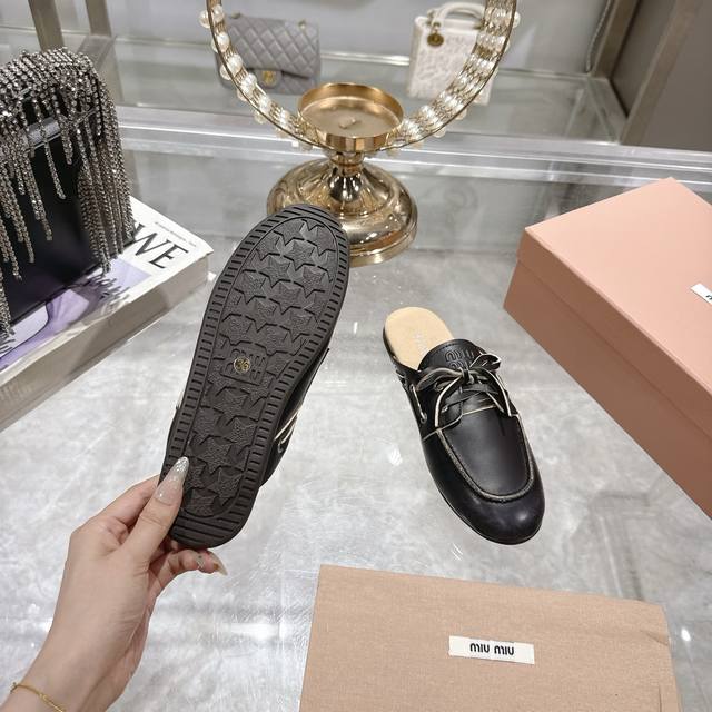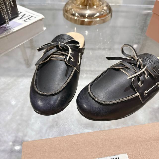 Factory-Made Miu Miu Distressed-Effect Lace-Up Flat Sandals With A Unique Design. Miu Miu Runway New Arrival, Retro Bean-Shaped Sandals. Fashionable, Minimalist, And Elegant. Versatile Styling. Extremely Comfortable To Wear. A Must-Have For The Year! Superb Craftsmanship. Each Pair Is Unique.