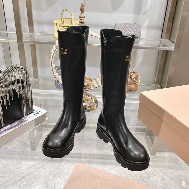Factory-released Miu Miu new fall/winter styles! This fall/winter season is truly spectacular! They're incredibly cool and look incredibly rich! Limited edition fall/winter styles! Whether you're looking for an ankle boot or a long boot, there's always a choice for you. They're incredibly soft and comfortable! They feel amazing! They create a loose fit and flatter your legs! They're a true punk style! Upper: Top-grain calfskin leather. Lining: Cowhide lining. Outsole: Original molded TPU non-slip outsole. Sizes: 35-40. Custom sizes (40) are non-refundable.