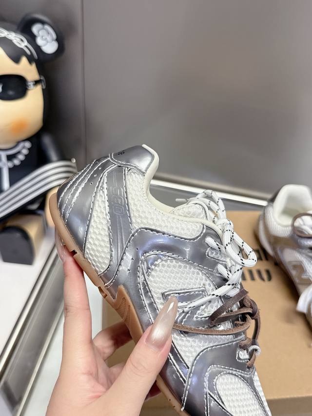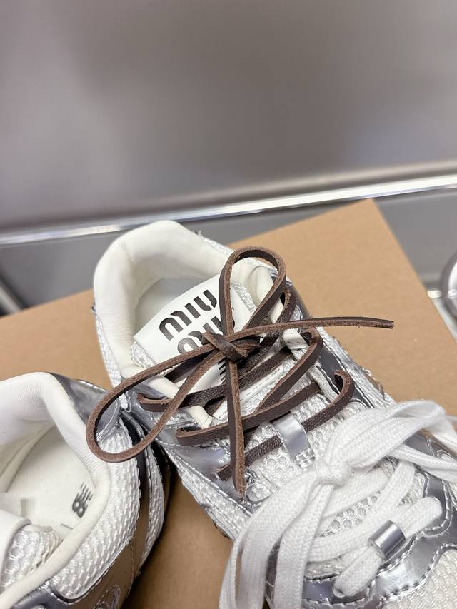 Fashion doesn't need to be ostentatious; it's about effortless expression. Miu Miu full-top sneakers, where mesh meets leather, create a wonderful spark of breathability and texture. Colorful patchwork, like leaping musical notes, plays a symphony of individuality and vitality. Every step is at the forefront of fashion, releasing the free spirit of the city and leading a carefree and stylish look. (p Mesh/Suede p. Cowhide p DDD)