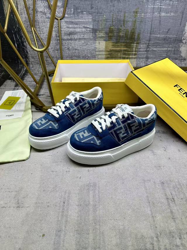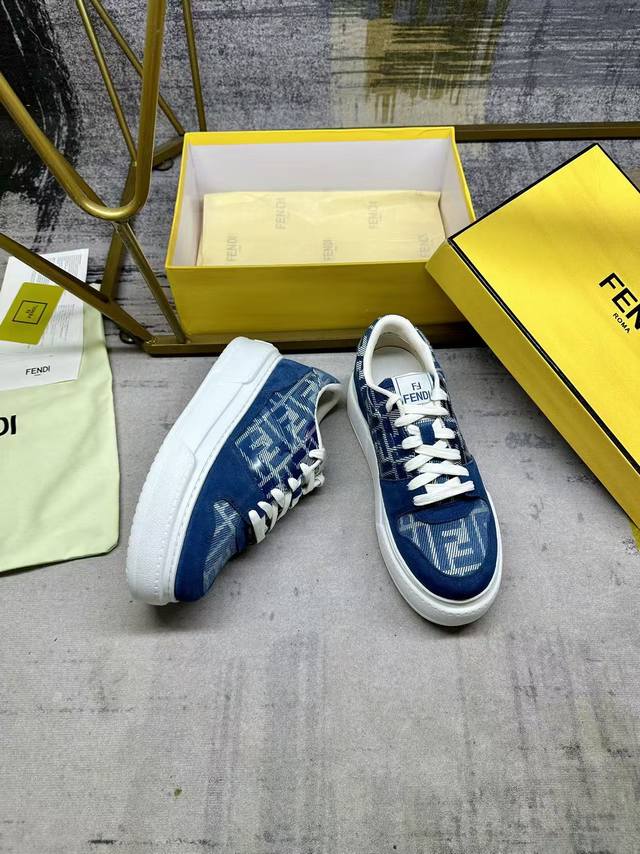 / fendi Match lace-up sneakers, featuring blue Ff jacquard and matching suede deta