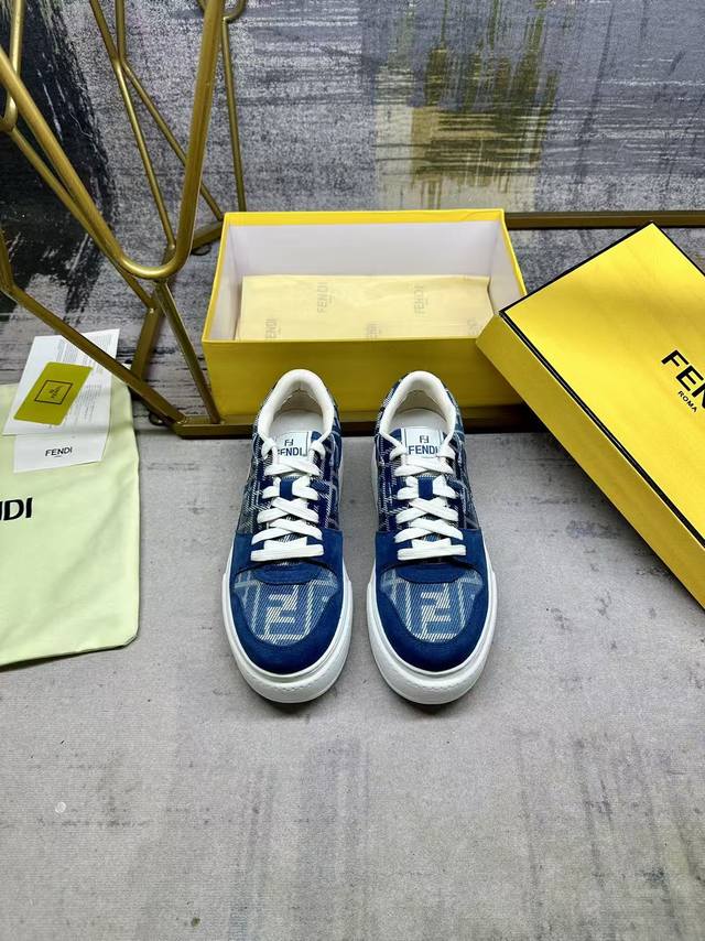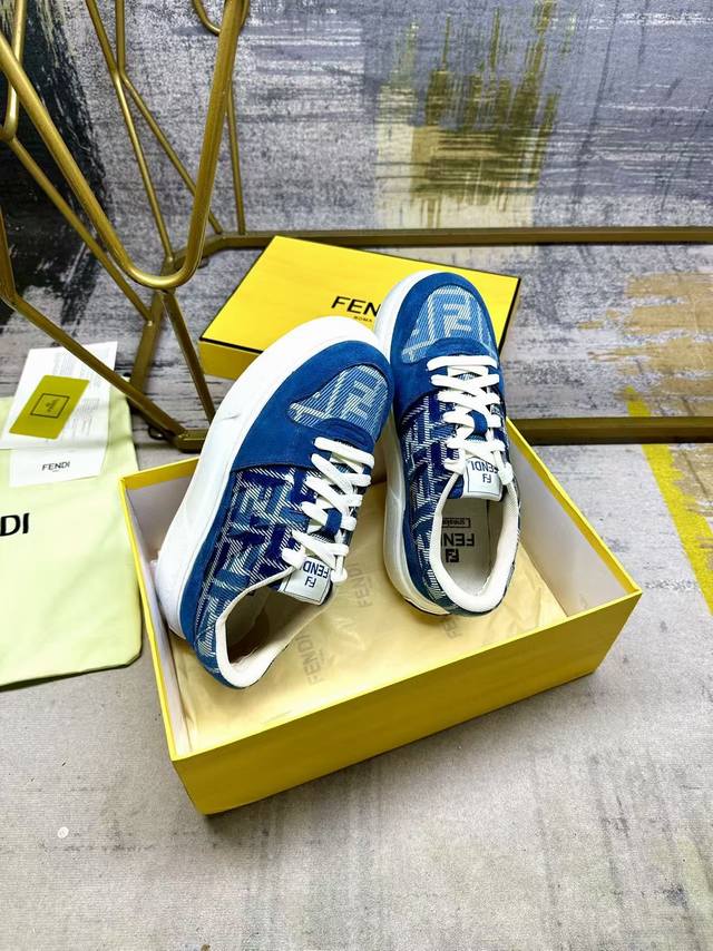 fendi Match lace-up sneakers, featuring blue Ff jacquard and matching suede details, with an injected Ff appliqu
