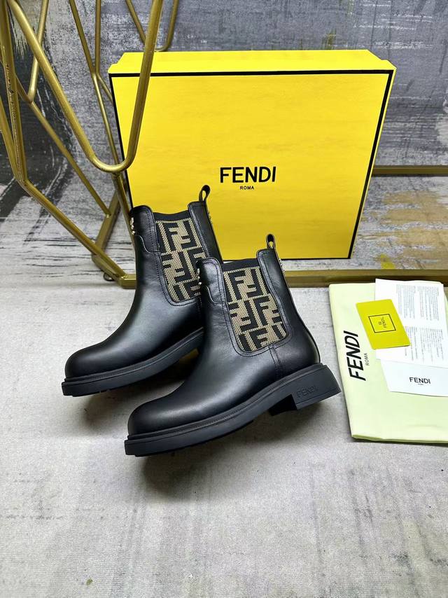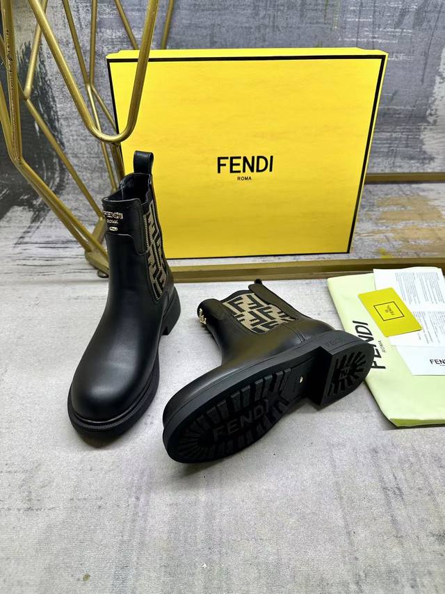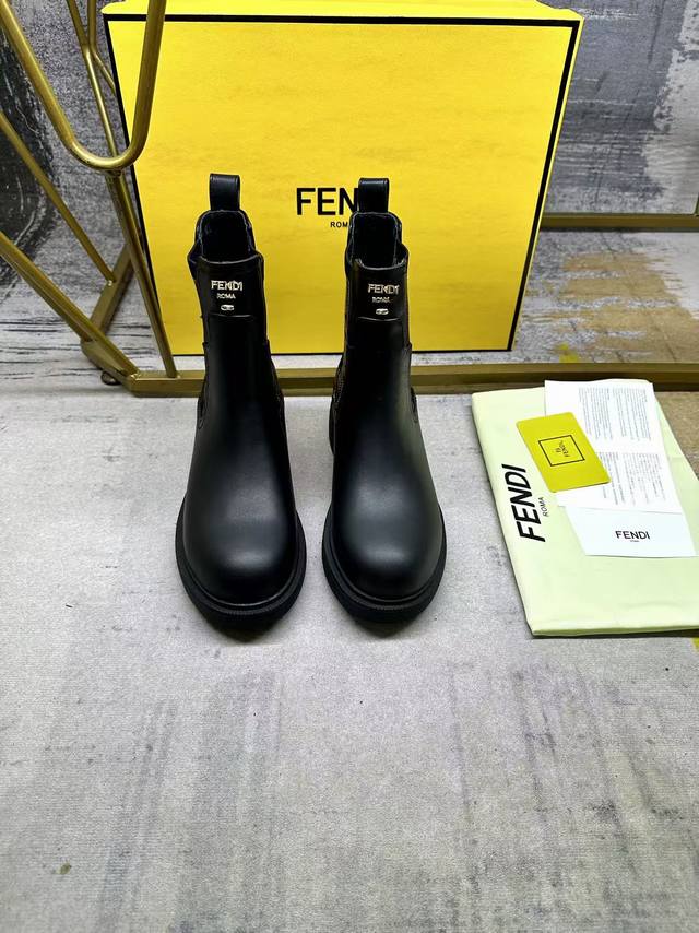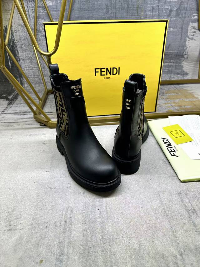 fendi new Chelsea boots, black cowhide fabric, sheepskin lining, gold buckle embellishment, comfortable and fashionable style, 35-42 size,