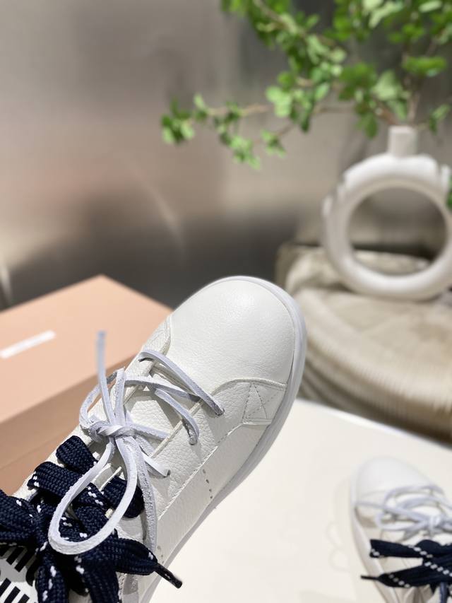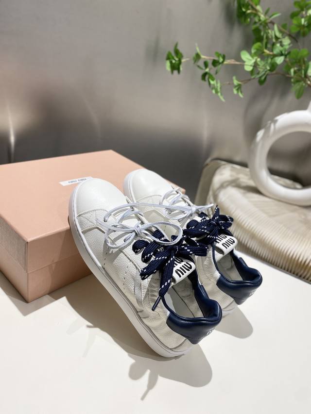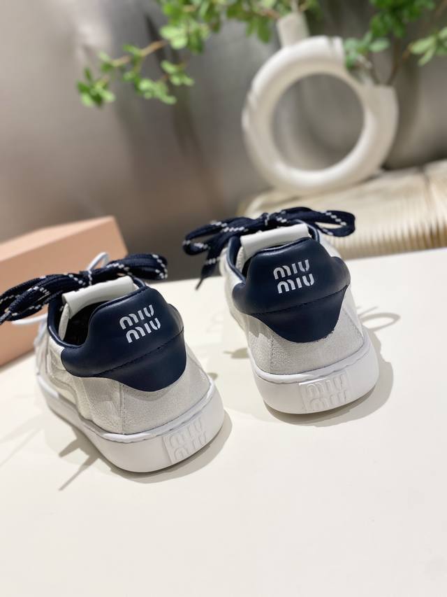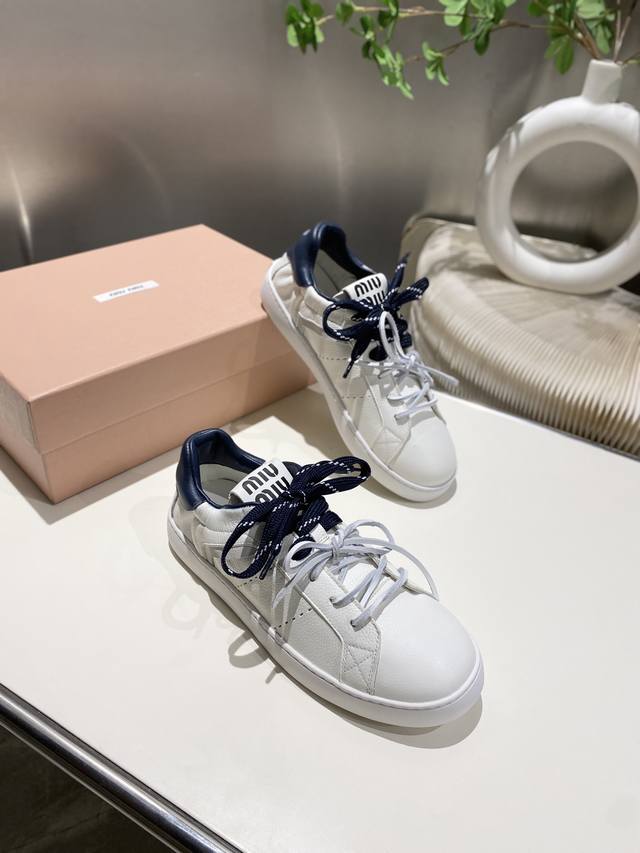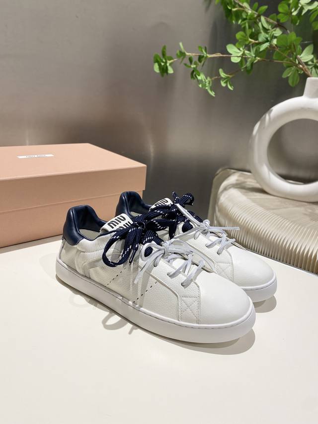 Full range. Miu Miu's 2025 Spring/Summer new casual white sneakers are now available. A key style recommended on the official website, these sneakers feature a simple plaid design and a distinctive tongue, exuding a youthful and sunny vibe. They pair easily with long skirts, short skirts, and shorts, creating a unique style. The outsole is ultra-lightweight IP foam, and the lining is top-grain cowhide. The material is a 1:1 replica with a distressed and faded finish. Sizes 35-39, 34-40, and 41 are available. No returns or exchanges.
