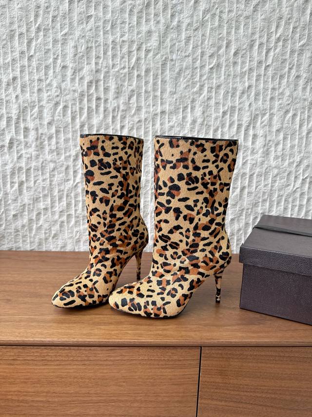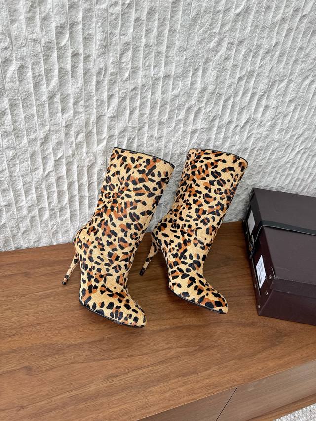 G101 Alaia 25Ss Autumn/Winter New High-Heeled Horse Hair Straight Ankle Boots El