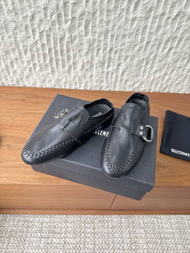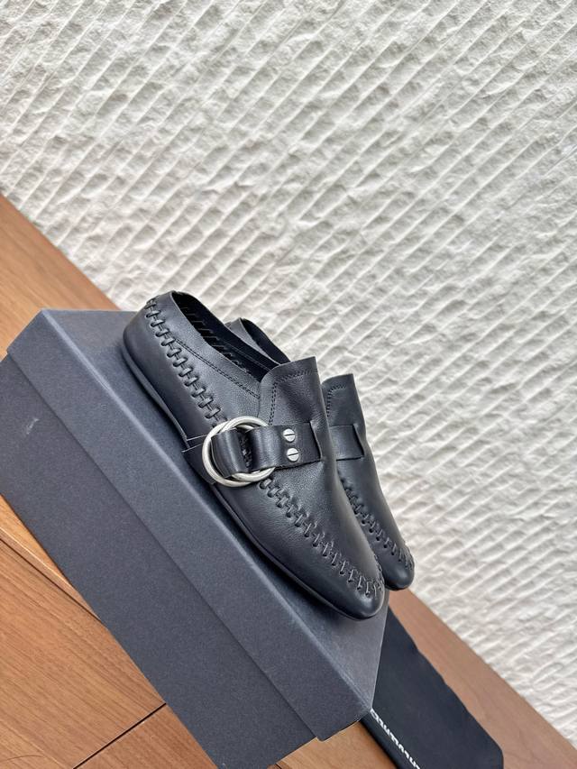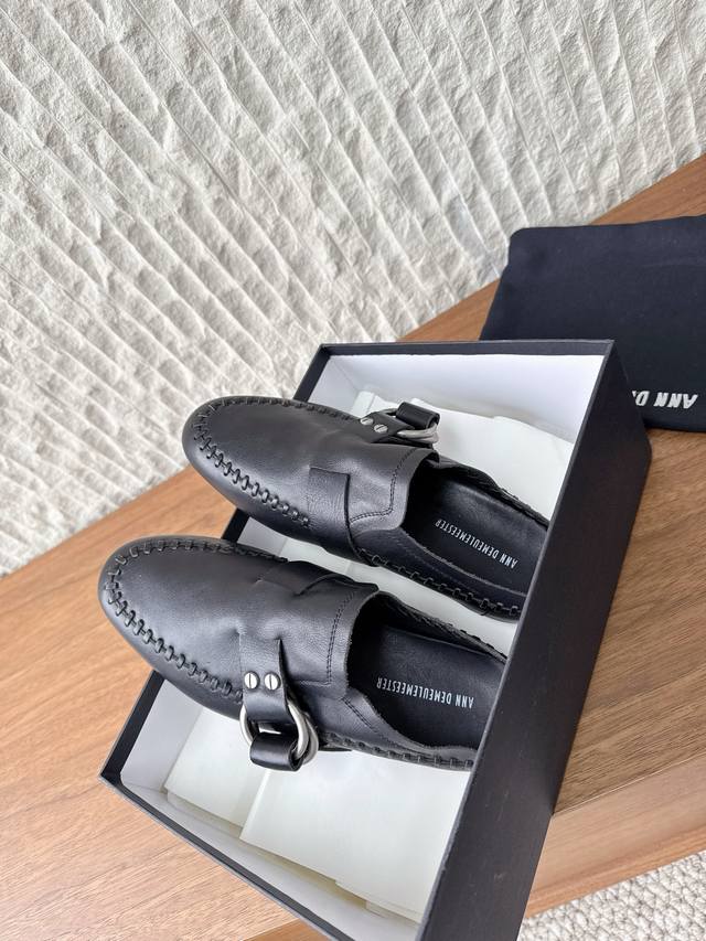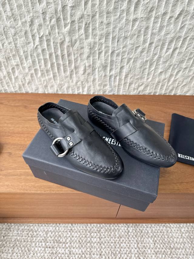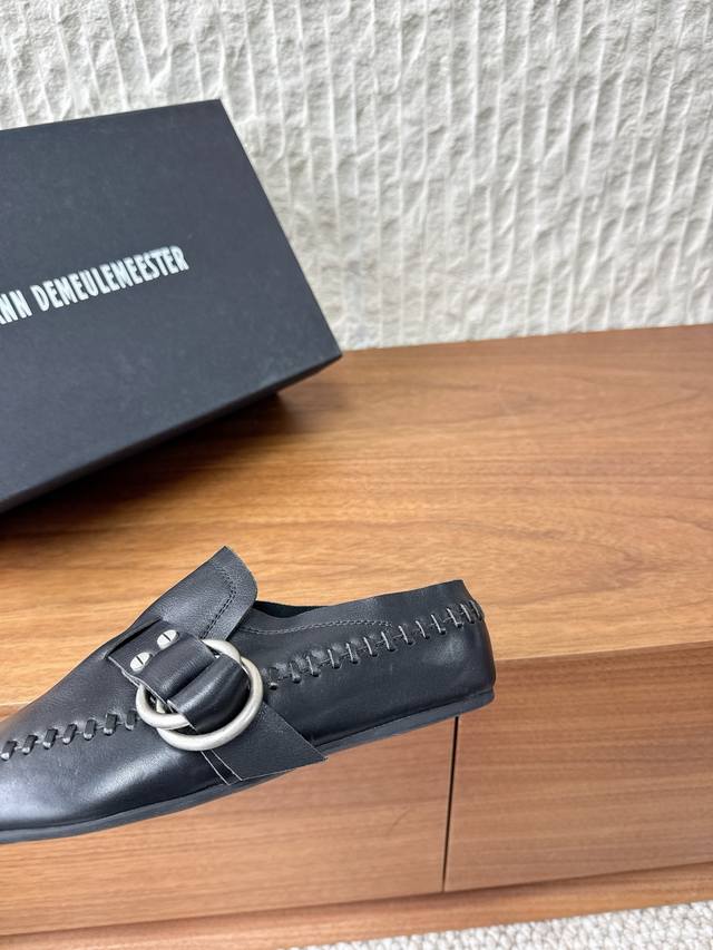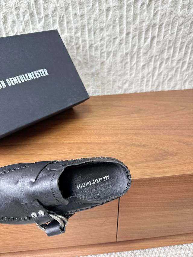 G101 Ann Demeulemesster, a niche streetwear brand, presents its new 2025 Autumn/Winter mule slippers. Antwerp Creative Director Stefano Gallici draws inspiration from the "nomadic spirit," blending the brand's signature dark romantic DNA with 70s hippie, motorcycle culture, and the American Southwest. This collection perfectly interprets the image of a "rebellious poet crossing the desert with a book of poems" through the collision of deconstructed tailoring and romantic ruffles, frayed edges, and layered, seemingly chaotic textures. The bags and footwear also maintain avant-garde design highlights, intertwining 19th-century romanticism with 90s rock aesthetics to create a unique aesthetic language that combines Antwerp's pioneering spirit with the free spirit of the American West. Upper: Original imported cowhide; Insole: Cowhide; Outsole: Original custom rubber outsole; Size: 35-40; 40.41: Custom orders are non-refundable.
