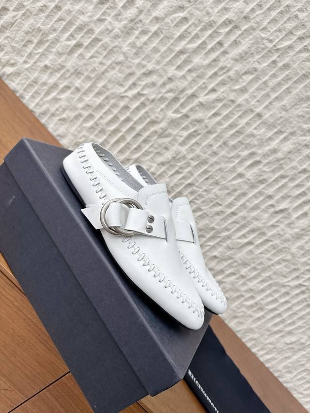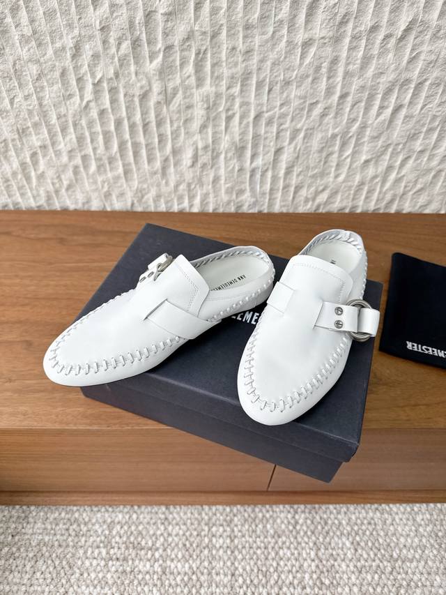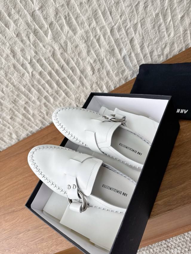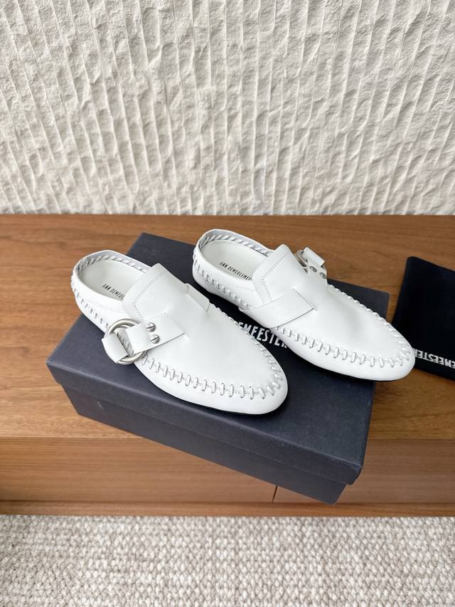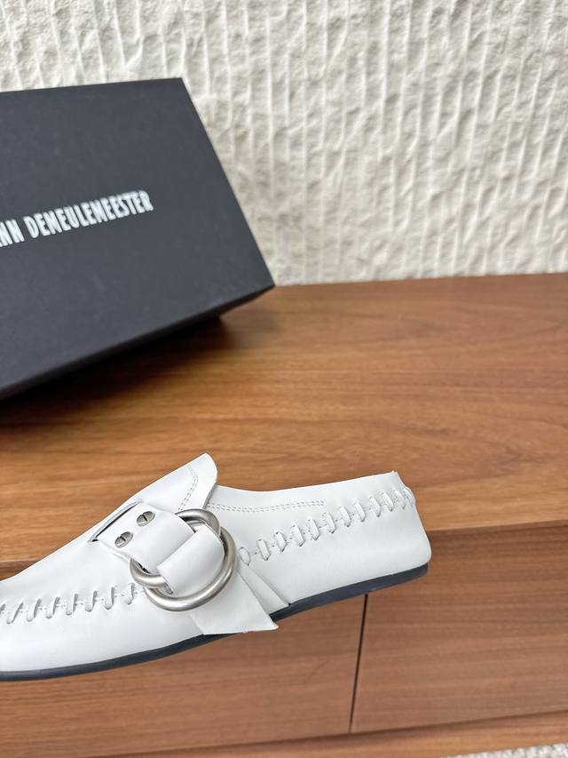 G101 Ann Demeulemesster, a niche streetwear brand, presents its new 2025 Autumn/Winter mule slippers. Antwerp Creative Director Stefano Gallici draws inspiration from the "nomadic spirit," blending the brand's signature dark romantic DNA with 70s hippie, motorcycle culture, and the American Southwest. This collection perfectly interprets the image of a "rebellious poet crossing the desert with a book of poems" through the collision of deconstructed tailoring and romantic ruffles, frayed edges, and layered, seemingly chaotic textures. The bags and footwear also maintain avant-garde design highlights, intertwining 19th-century romanticism with 90s rock aesthetics to create a unique aesthetic language that combines Antwerp's pioneering spirit with the free spirit of the American West. Upper: Original imported cowhide; Insole: Cowhide; Outsole: Original custom rubber outsole; Size: 35-40; 40.41: Custom orders are non-refundable.