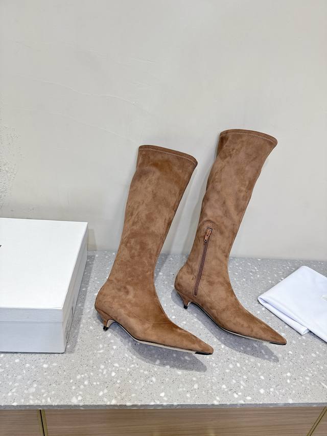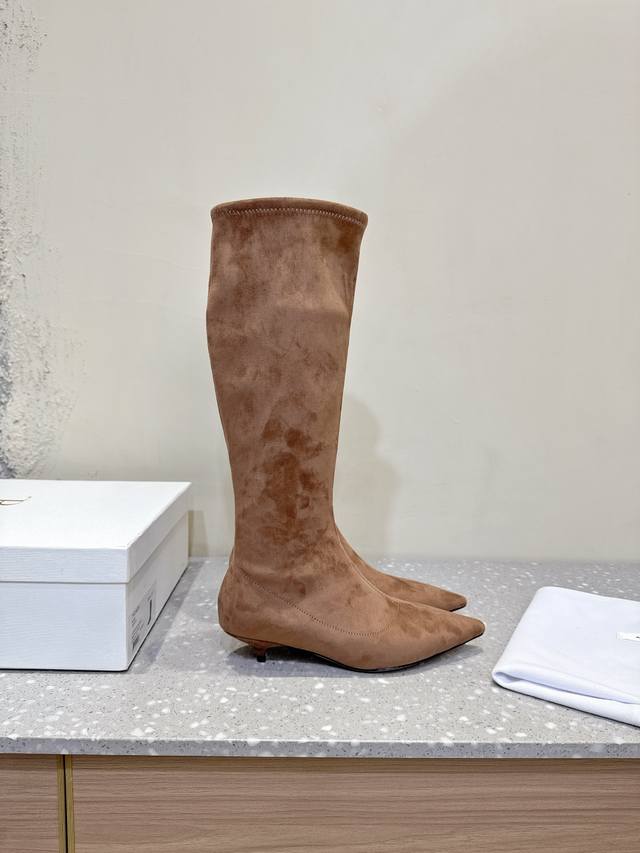 G123 The Row niche fashion brand 25Ss autumn and winter new elastic stretch pointed toe short boots kitten heel long boots