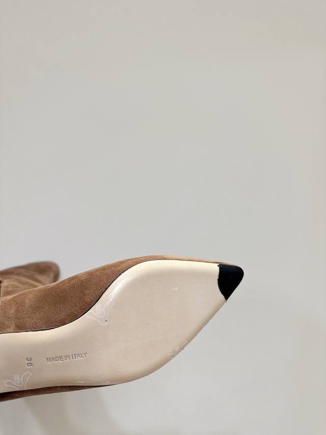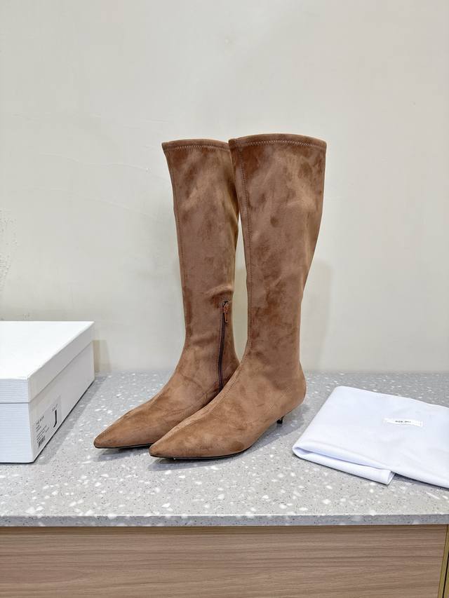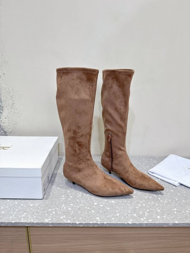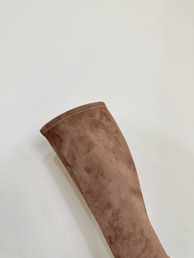Stretch suede material, this material not only fits the leg lines, but also can well modify the leg shape, making the legs look more slender and smooth, and the suede material has a high-end matte texture, adding to the luxury and retro atmosphere of the boots.