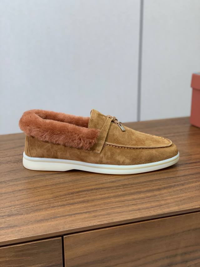 G131 What you see is what you get: Loro Piana cashmere loafers. Made with top-grade Italian cashmere, these loafers offer a retro, elegant, and understated luxury. Combining style and practicality, they maintain the highest quality available online. Upper: Imported genuine cashmere leather; Midsole: Wool insole; Collar: Wool; Outsole: Original TPU outsole with card and wooden ball. Sizes: 34-42. Sizes 34, 41, and 42 are custom-made and non-refundable.