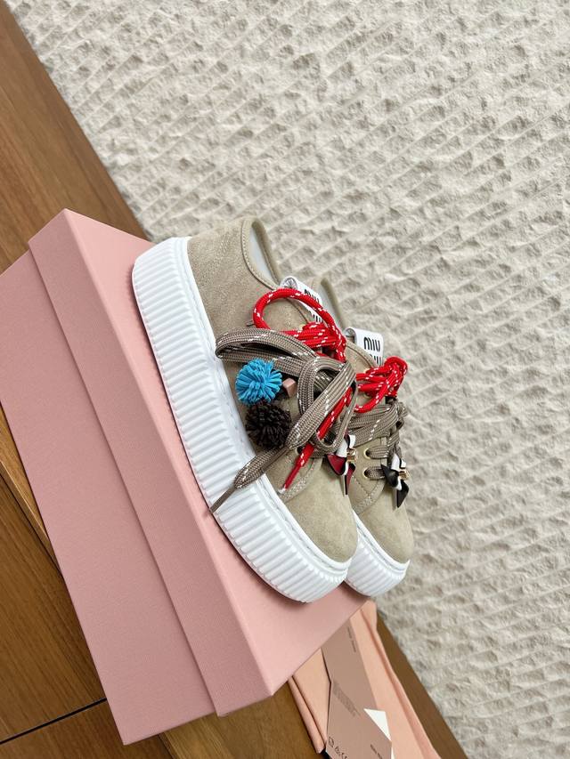G169 Miumiu 25Ss Autumn/Winter New 3D Embroidered Thick-Soled Casual Shoes (White) DDD Top-quality original fabric with a rich texture, paired with classic 3D three-dimensional letter embroidery. The embroidered logo is three-dimensional and full, instantly brightening up the overall look and increasing recognizability ! Ip ultra-light foam outsole! Lightweight and highly elastic. Whether for everyday outings or vacations, it can easily handle any situation. DDD Wearing these, you'll be the most stylish person on the street! DDD Upper: Imported high-gloss cow suede DDD Lining: Sheepskin lining DDD Outsole: Ip foam outsole DDD Size: 35-40 40. Custom orders are non-refundable and non-exchangeable DDD