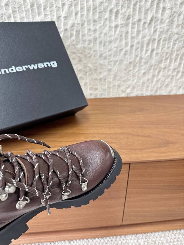 G172 Alexander Wang 25Ss Autumn/Winter New Lace-up Platform Martin Boots (Ankle Boots) These platform boots from Alexander Wang are an absolute must-have for those with great legs, making you look taller and slimmer. The classic black color is incredibly versatile. The leather upper features a laser-engraved logo, and the lace-up design combined with the 7cm platform sole easily creates the illusion of longer legs! Upper: Made with original imported cowhide. Insole: Sheepskin. Outsole: Original custom rubber outsole. Size: 35-39. Size 40 is custom-made and non-refundable.