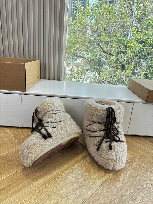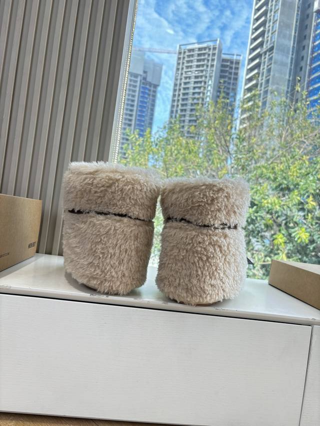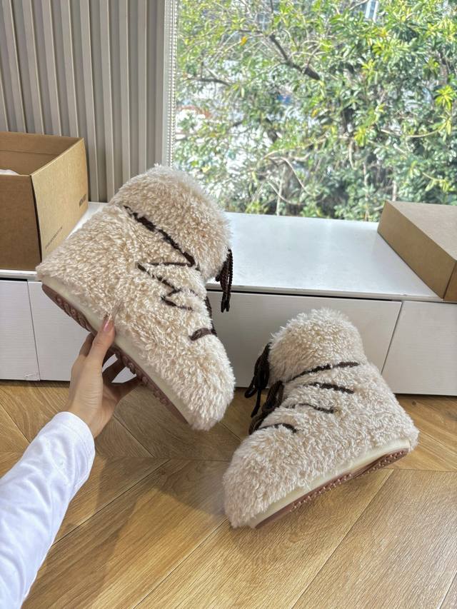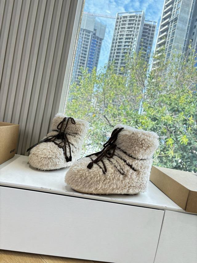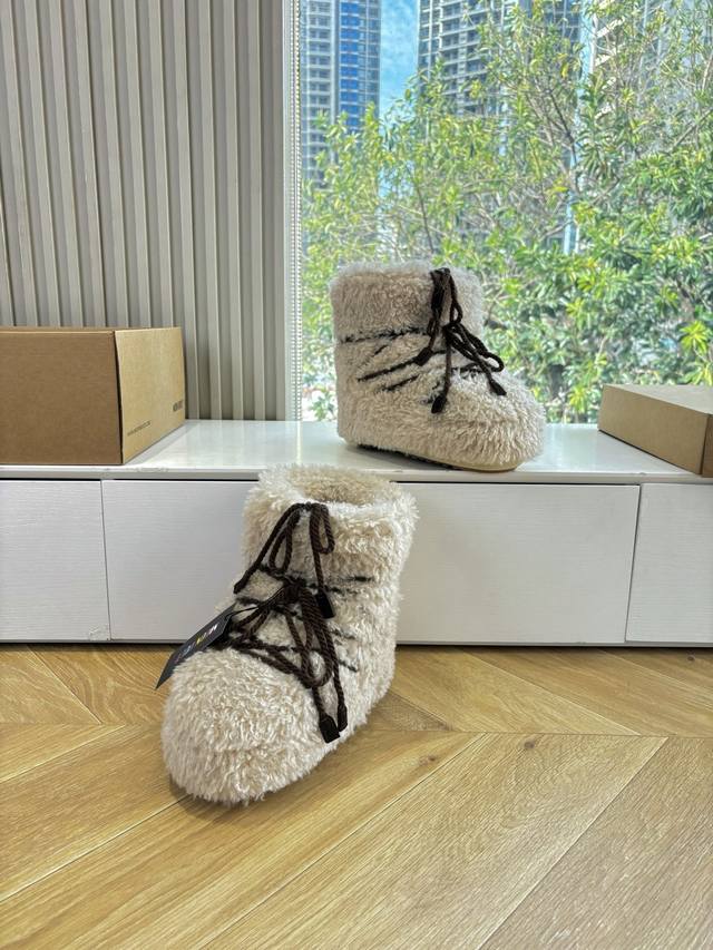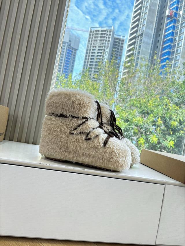 G178 What you see is what you get: Moon Boot, the latest autumn/winter snow boots, ugly-cute ski shoes, recommended by many celebrities and influencers. A must-have for autumn/winter skiing. Now, an even more unique snow boot is back! With a 5cm hidden heel, it's the Moon Boot. The Moon Boot was already very popular in the 2000s, worn by celebrities like Paris Hilton and Victoria Beckham. Now, with the Y2K trend back in full swing, this ugly-cute snow boot is making a comeback. Unisex, left/right, it looks huge, incredibly slimming, warm, and comfortable. Material: Original custom-made faux-grain wool. Lining: Thousand-feather cotton, original non-slip and wear-resistant suction cups. Outsole. Size: 35 36 37 38 corresponds to S, 39 40 41 corresponds to L.