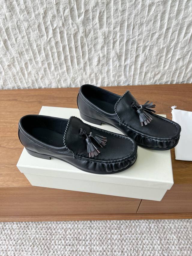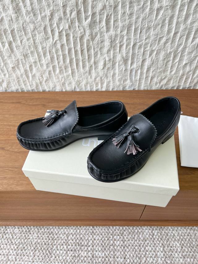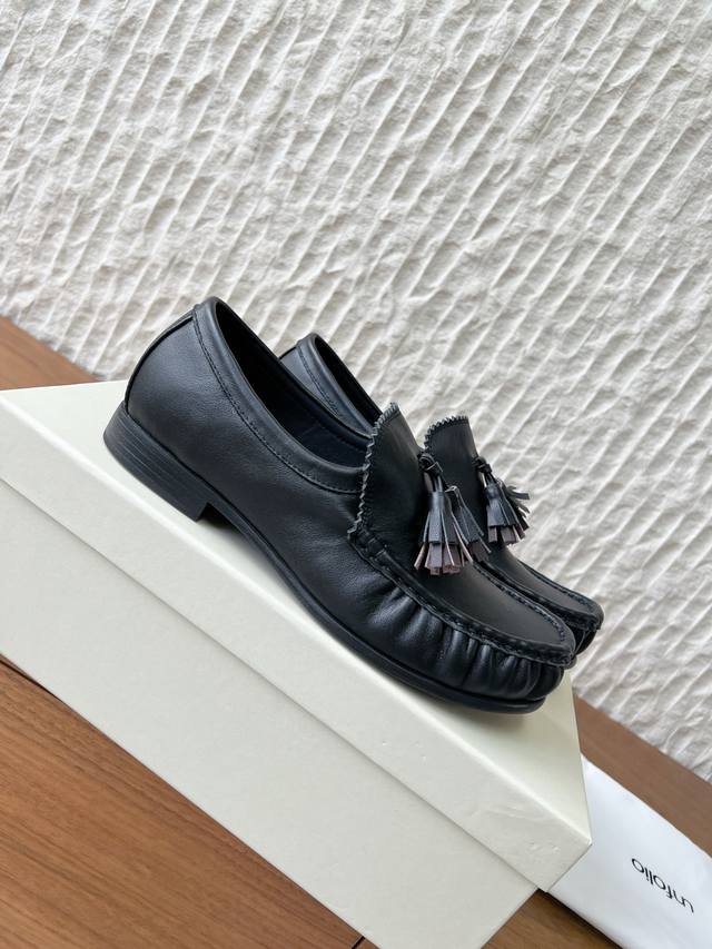 G199 Unfolio Niche Trendy Brand 26Ss Early Spring New Micro-Pleated Tassel Loafers DDD Traditional tassel loafers often feature full, flowing, and even slightly dramatic tassels. Unfolio's approach is "purification" and "simplification." The decorative aspect of the tassels is weakened, while the structural sense is strengthened Ddd They appear as if they are a precisely crafted component that grows naturally from the shoe body, rather than an added decoration. Ddd This treatment allows the tassels to break away from the inherent impression of "college badges," becoming a restrained dynamic embellishment. Ddd These shoes perfectly interpret "bookish cool." They possess the intellectual depth inherent in loafers, making them a piece that injects a contemplative atmosphere into everyday wear. DDD Upper: Made with original imported cowhide suede Ddd Insole: Sheepskin Ddd Outsole: Original custom-made Italian genuine leather outsole Ddd Sizes: 35-39 40 Made to order, no returns or exchanges DDD DDD