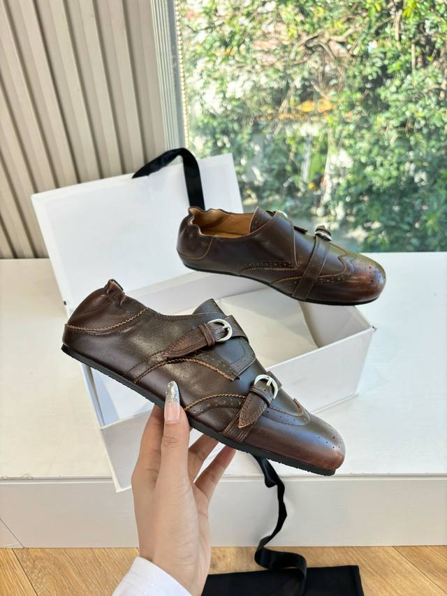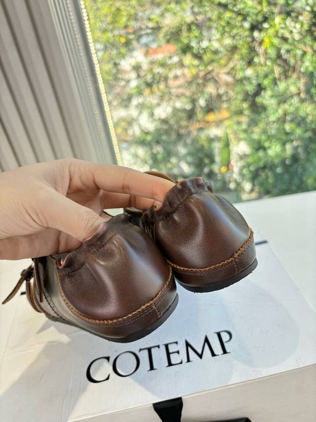 G21325 Cotemp Loafers continue the Cotemp Regalo design, featuring a delicate, rounded toe, a finely textured leather upper, and a wider boot shaft. The soft, stackable design exudes a relaxed, effortless vibe. The shoe's simple yet sophisticated construction, with double rows of fine stitching, creates exquisite details. The rubber sole with a 5cm inward-curving chunky heel provides slip resistance and stability, presenting a neutral, modern style perfect for autumn and winter. The folded design reveals a delicate texture, with the suede and leather creating a contrasting sheen. A velvet lace-up detail at the back of the boot shaft allows for slight adjustment of the cuff. These loafers perfectly capture a relaxed yet stylish look, perfectly blending casualness and coolness. The pleated boot shaft adds a touch of casualness, while the fold-over design adds a subtle detail. They instantly elevate your street style, looking great with both pants and skirts! DDD Upper: Calfskin DDD Insole: Sheepskin DDD Outsole: Open-mold rubber outsole DDD Sizes: 35-39 Sizes 40 and 41 are custom-made and non-refundable DDD