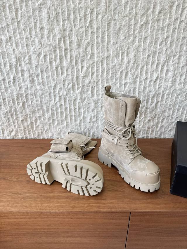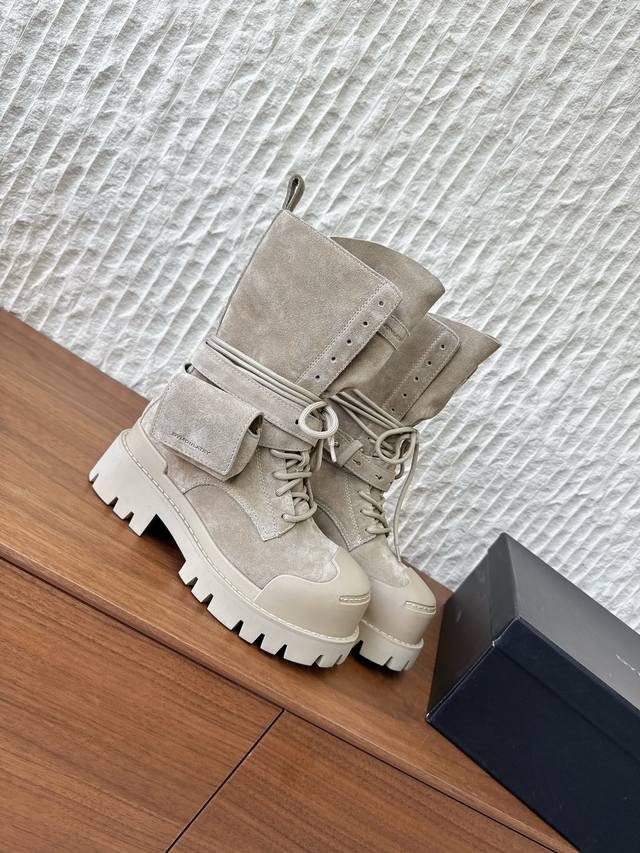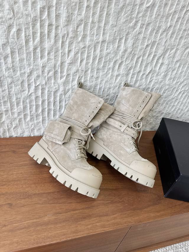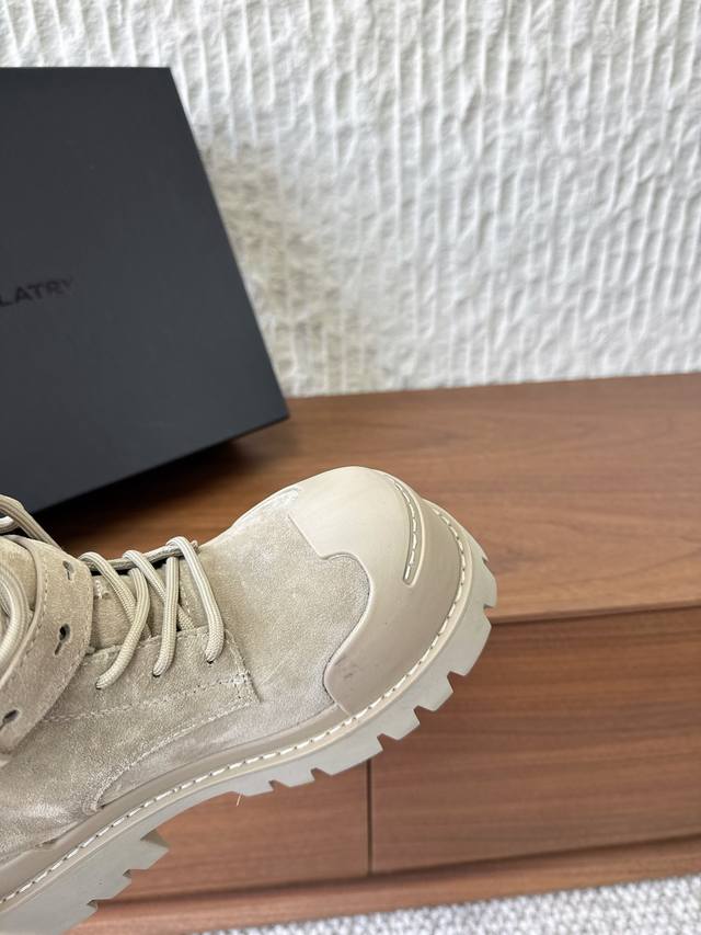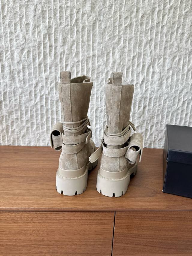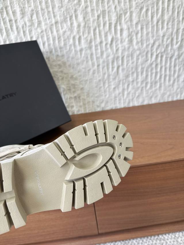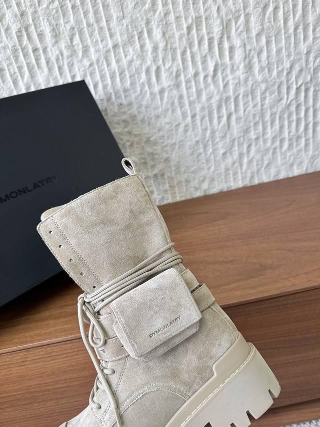 G236 Dymonlatry, a niche streetwear brand, presents its new 2022 Autumn/Winter motorcycle boots and combat boots. The "Bastion" 2025 Autumn/Winter collection reimagines classic combat boots with a functional outsole. The relaxed, flared silhouette exudes a romantic charm. The ankle strap is detachable. This is the same style worn by Zhao Lusi and Yamy, with original mold details. Material: Original imported cowhide suede. Lining: Cowhide Lycra fabric. Outsole: Original custom rubber TPU stitching combination outsole . Sizes: 35-40. Size 40 is custom-made and non-refundable.