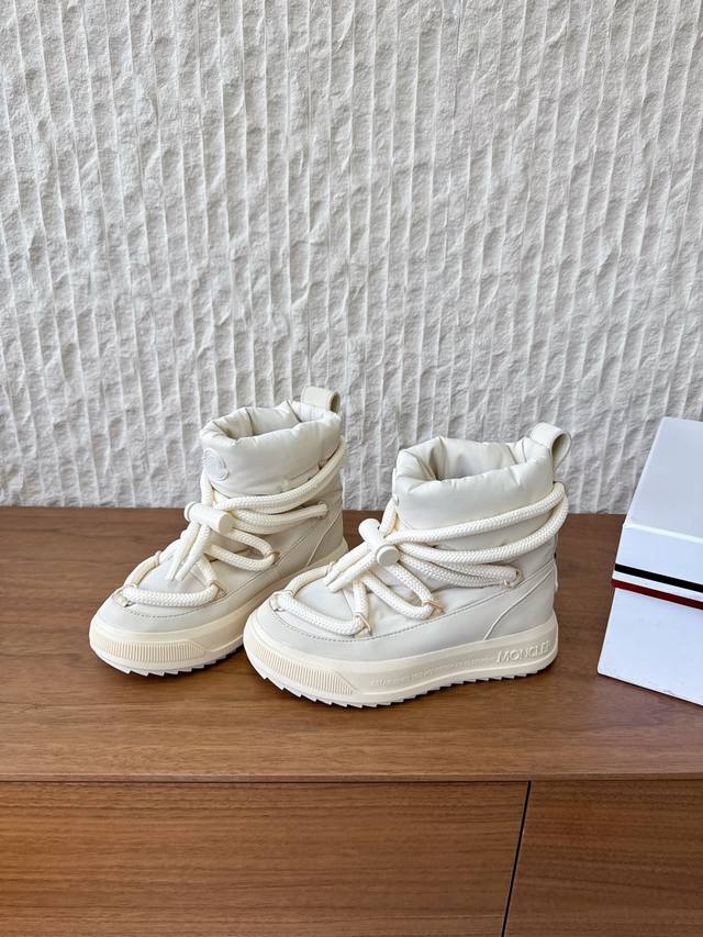 G236 Moner Altive Mid 25Ss Autumn/Winter New Down Boots, Ski Boots, Snow Boots. Features a drawstring lace-up design and a warm lining for comfort and warmth. Equipped with a strong-grip Vibram outsole, these boots embody the modern style of the Moner footwear collection's alpine heritage. Material: Original imported waterproof down-filled embossed cowhide leather; Filling: 30% down + 70% air cotton; Insole: Sheepskin; Outsole: Original custom TPU rubber combination outsole; Sizes: 35-39; Sizes 40 and 41: Custom-made, no returns or exchanges.