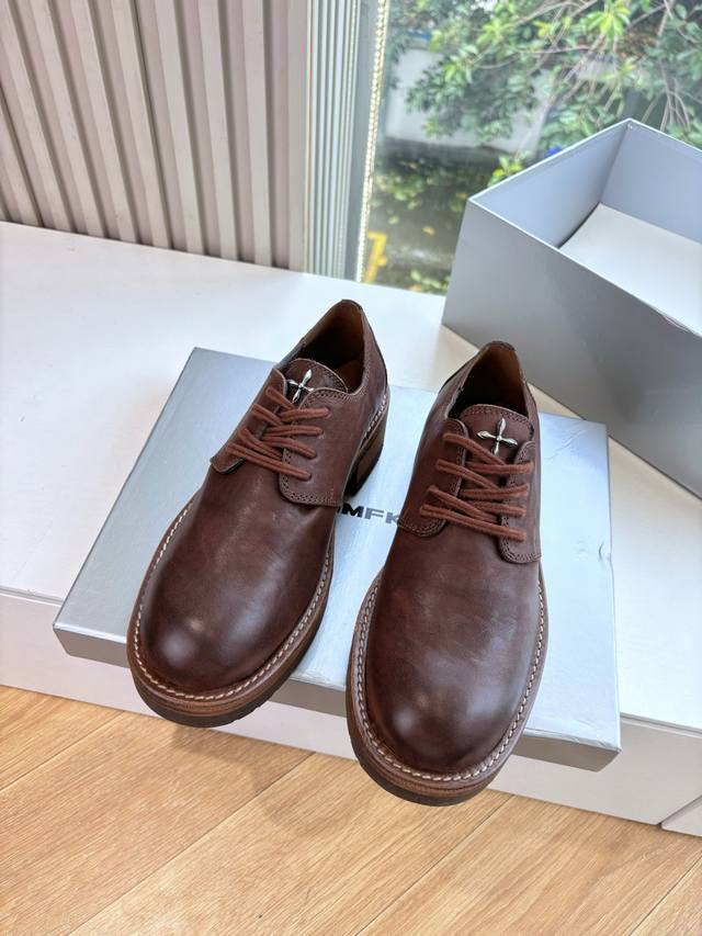 G261 What you see is what you get, washed Smfk cross new boots, who knows the gold content? A touch of yellow in autumn, if you like it, it's actually very cool. Upgraded version of the yellow boots. These boots are a very textured waxy yellow, made with horse leather. The sole uses Goodyear welt construction to fix the stitching, which can extend the life of the boots. The side zipper makes it easy to put on and take off, and they are also comfortable to wear. Most importantly, they really make your legs look thinner when you wear them. They look especially good and stylish with dark autumn and winter coats and hoodies. Material: Imported cowhide. Lining: Cowhide. Sole: Original mold. Sizes: 35-41. Sizes 40 and 41 are custom-made, no returns or exchanges.