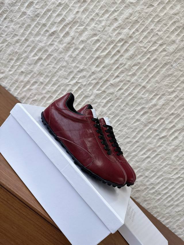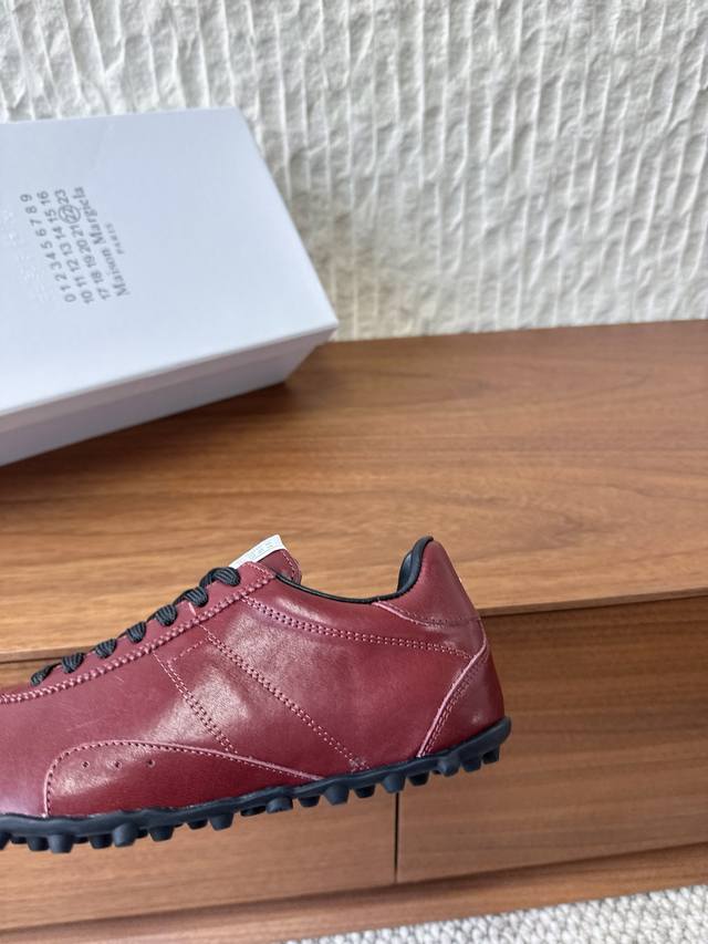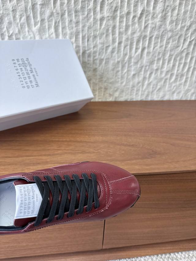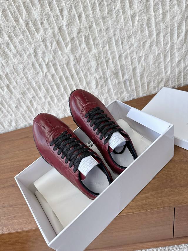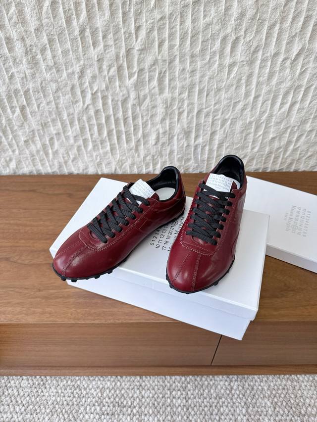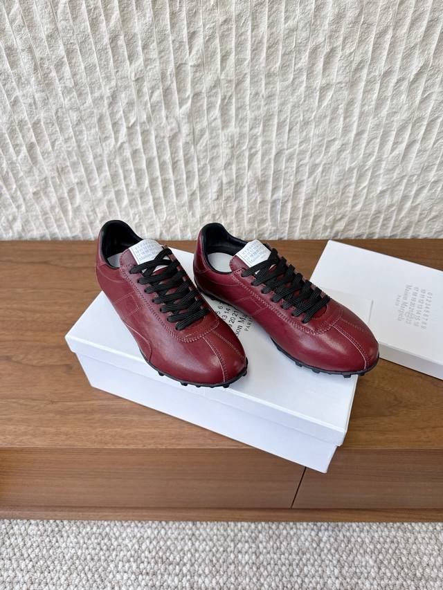 G279 Maison Margiela 25Ss Autumn/Winter New Couple Style Sprinters (Training Shoes) The new Sprinter silhouette is made of distressed, supple cowhide, inspired by vintage style. Through distressing, stitching, and patchwork techniques, the shoes are given new life and beauty. The tongue features the classic number logo, paired with a non-slip studded sole, and the heel is adorned with the iconic white stitched logo, exuding a sense of craftsmanship. Material: Original imported cowhide Lining/Insole: Sheepskin Outsole: Original custom rubber outsole Sizes: 35-44 (Women's size 40, Men's size 45, custom orders are non-refundable and non-exchangeable)