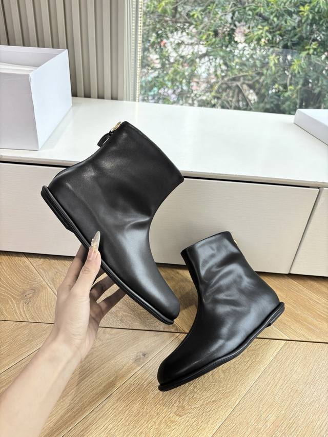 G679 The Row Hand-woven Flat Ankle Boots DDD With minimalist design, these boots exude a quiet sophistication, becoming a perfect match for those who appreciate quality. The round toe design is gentle and suitable for all foot shapes DDD The clean lines of the ankle shaft extend from the toe to the opening DDD Without superfluous embellishments, they possess a sculptural silhouette DDD This is the signature aesthetic of The Row DDD It's a wardrobe staple DDD Upper: Imported cowhide DDD Lining: Water-dyed cowhide lining DDD Outsole: Original molded rubber outsole DDD Sizes: 35-39 40.41 Customized DDD