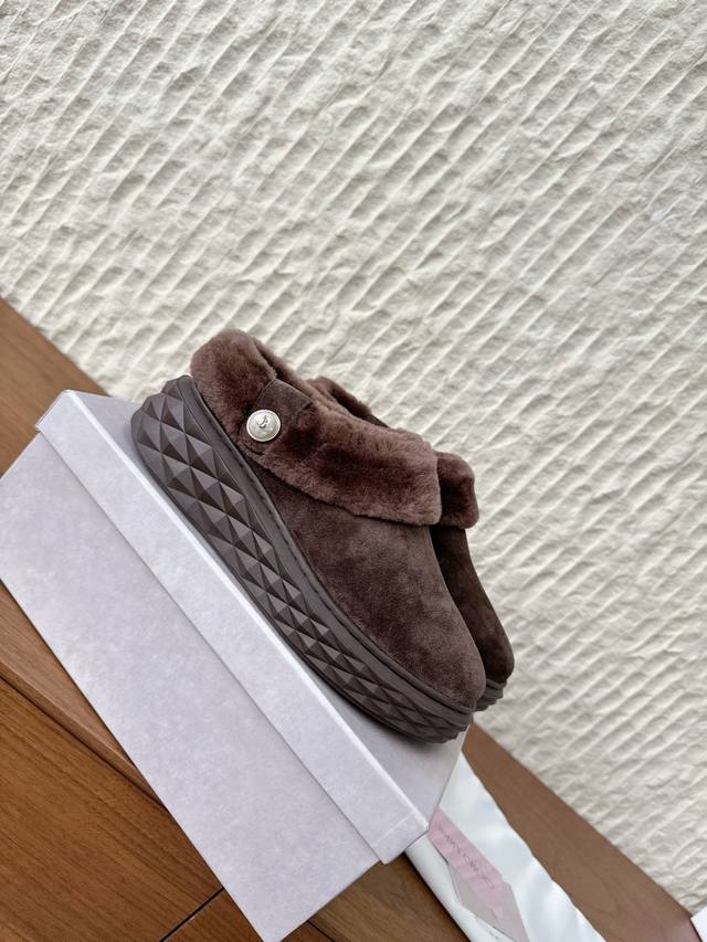 G739 Jimmy Choo 25Ss Autumn/Winter New Thick-Soled Boken Half-Slip-On Sneakers. The Diamond Maxi series features an innovative sole design with ingeniously paired textured diamond-cut golf studs for increased grip on the course. This sneaker combines practicality and style, with integrated studs providing a secure grip for more stable shots and better ball control. Comes with exquisite boutique packaging. Material: Original imported cow suede. Lining: Wool. Sole thickness: 4.5cm. Outsole: Original custom TPU rubber outsole. Size: 35-39. Size 40 is custom-made and non-refundable.