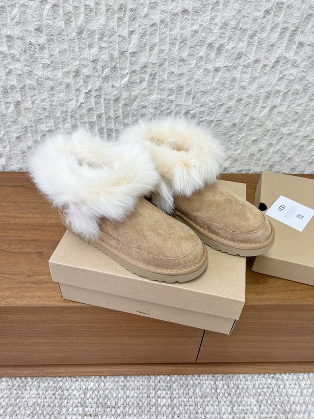 G767 Ugg, a niche trendy brand, presents its new 25Ss autumn/winter classic furry slippers. These new Ugg autumn/winter "cloud-walking" slippers are perfect for any relaxed style. The sheepskin and wool blend wraps your feet in a warm and cozy embrace, while the thick sole provides a light and airy feel. Whether you're going downstairs to pick up a package or pairing them with a sweater dress, you can instantly achieve a "laid-back chic" look. Half the fashion world is wearing them, effortlessly exuding a sophisticated vibe. The sheepskin and wool blend is incredibly soft, like having a little lamb tucked into your feet. Upper: Made with original imported cow suede and wool. Insole: Wool. Outsole: Original custom EVA foam outsole. Size: 35-39. Size 40 is custom-made and non-refundable.