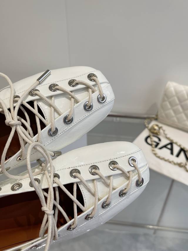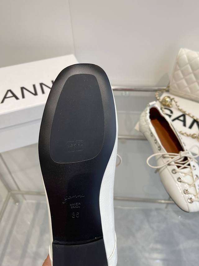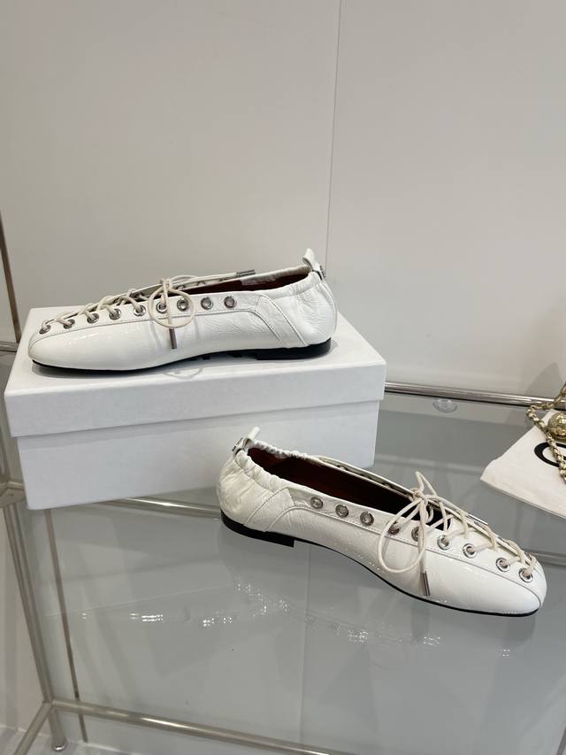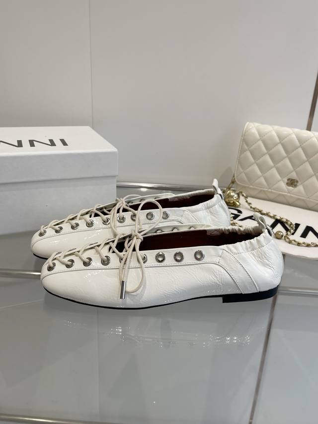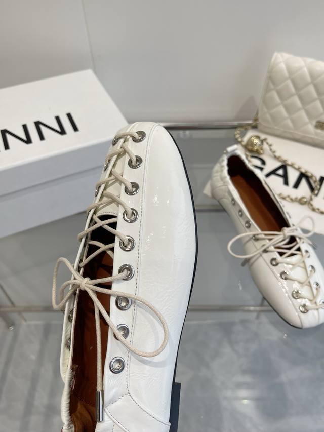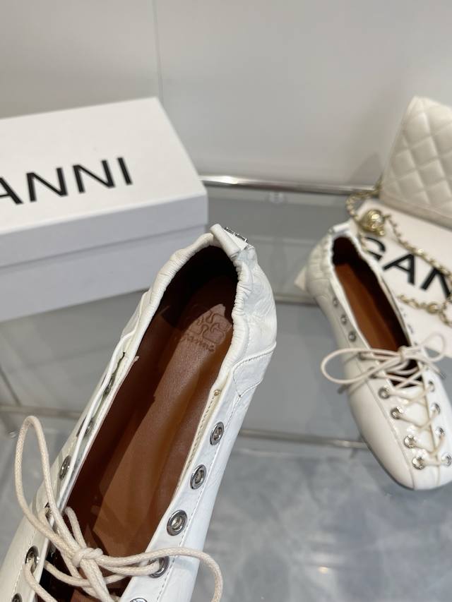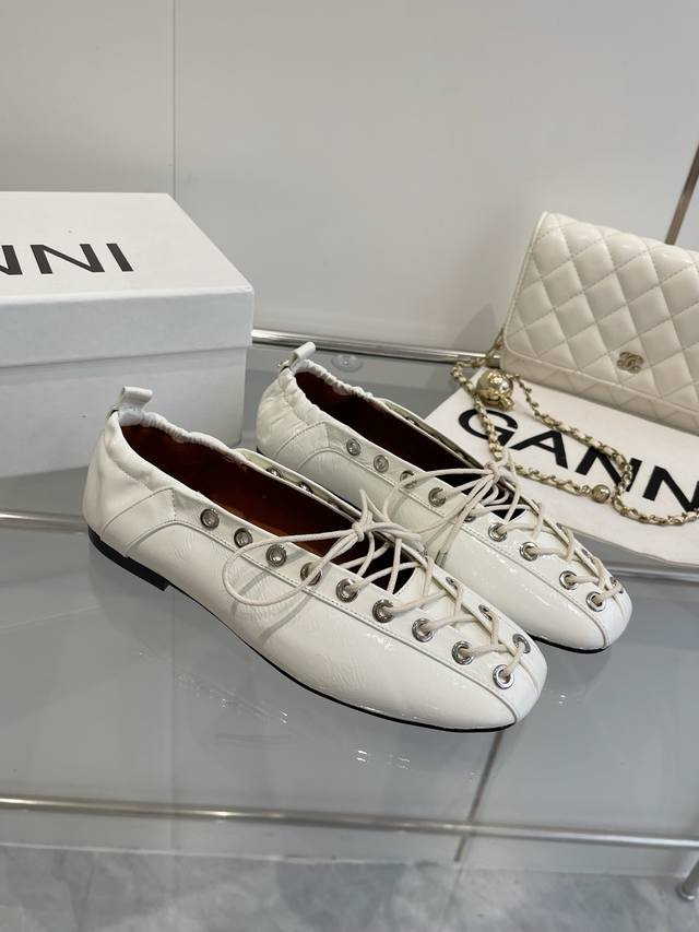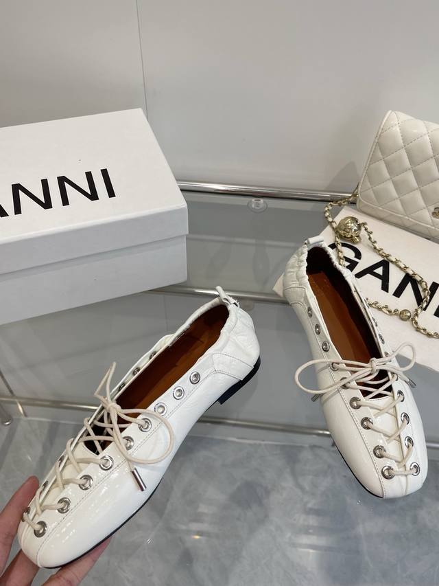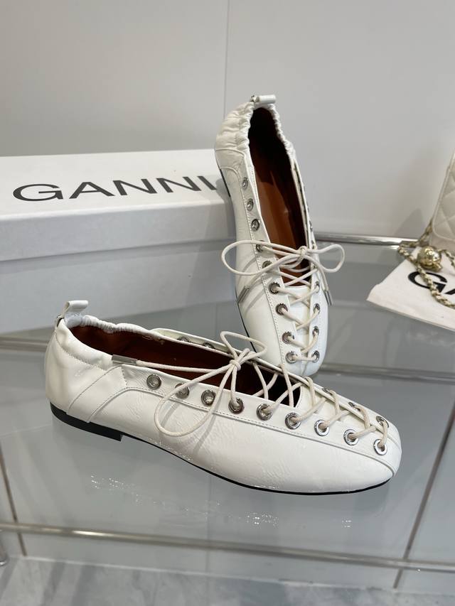 Ganni 25Ss Spring/Summer Runway New Arrival Round-Toe Leather Strap Grommet Ballet Shoes Upper: Imported Cowhide Leather Lining: Custom-Made Water-Dyed Calfskin Sole: Original Molded Rubber Sole Sizes: 35-39, 40, 41 (Custom-Made, No Returns Or Exchanges)