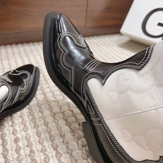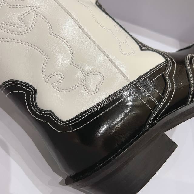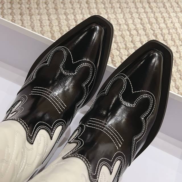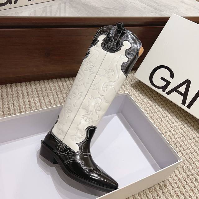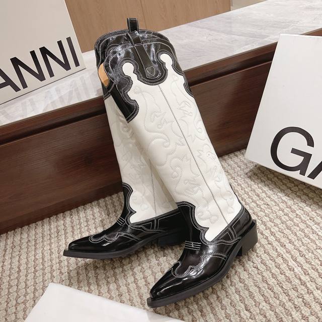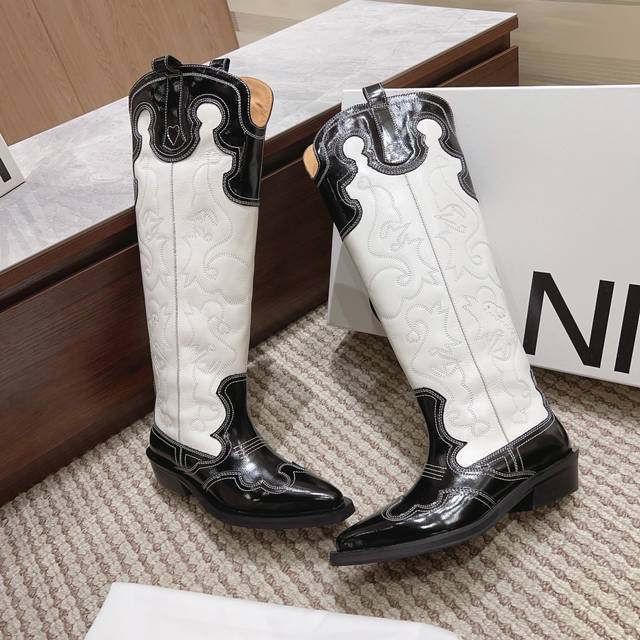 Song Yanfei's same embroidered patchwork leather boots with pointed toes, high-top cowhide Western cowboy boots, Ganni boots are being worn all over the internet