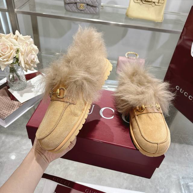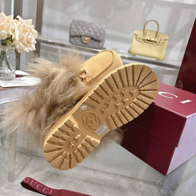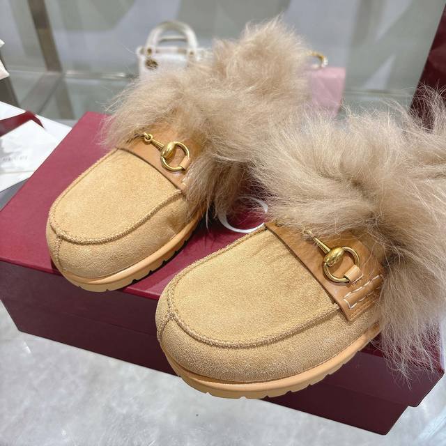 Closed-toe slippers. Miu's new suede and wool slippers are a new trend. Miu's M