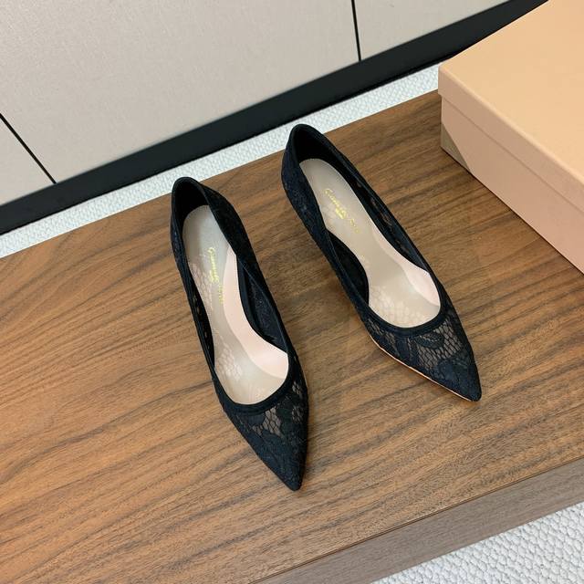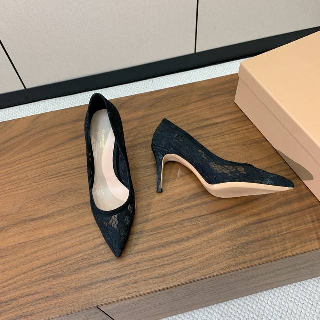 Gianvit* Ross* Lace Flats. These shoes exude femininity at first glance. A treat for those who love stilettos. A timeless and perfectly styled design. Material: Lace upper, sheepskin insole, genuine leather outsole. Available in 8.5cm and 10.5cm heels. Please specify when ordering. Sizes: 34-42. Sizes 34, 40, 41, and 42 are custom-made and non-refundable. Wholesale: [Brand Name]