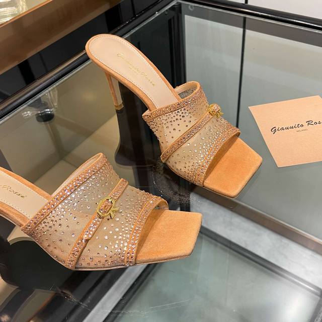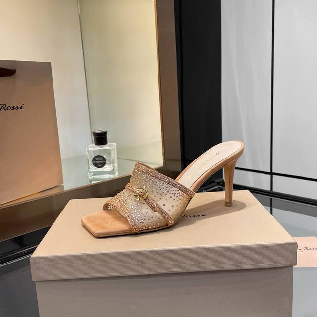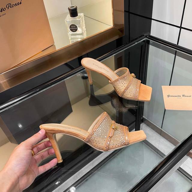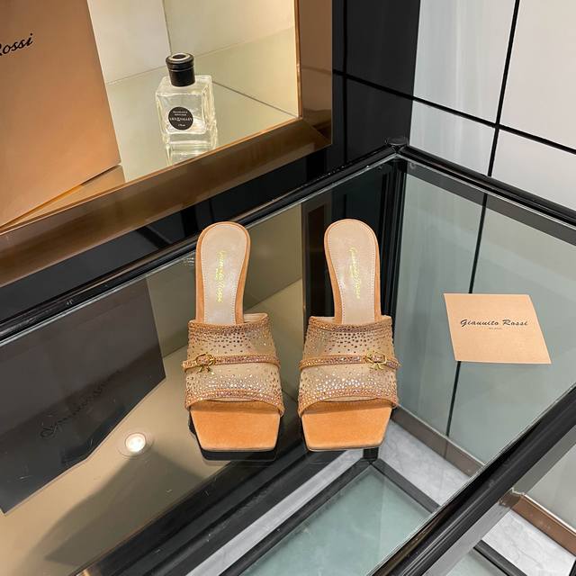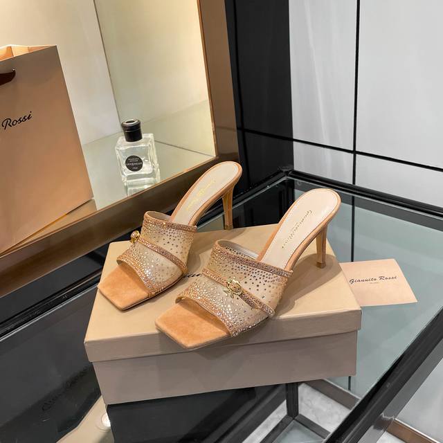 Gianvito Rossi 2025 New Slippers - Top-Tier Version! High-Quality Item! Swarovski crystal square-toe high-heeled slippers, like fairy shoes straight out of a fairytale. The Swarovski crystals are dazzling, like stars scattered across the surface, each radiating a dreamlike glow. The square toe design accentuates elegance, while the high heel adds confidence. Wearing them feels like walking on flowers, each step fragrant, allowing you to fully enjoy ultimate romance and luxury. Original Mold - Top-Tier Version _____________________________ * Full Packaging. * Upper: Original Custom-Made Sheepskin with Swarovski Crystals * Insole: Sheepskin * Sole: Italian Genuine Leather Outsole * Heel Height: 8.5cm (5.5cm is custom-made and non-refundable!) Height must be specified when ordering. Otherwise, the default heel height is 8.5cm. Sizes: 35-43, 40, 41, 42, 43. Custom orders are non-refundable and non-exchangeable. *Factory price: [Price not specified]
