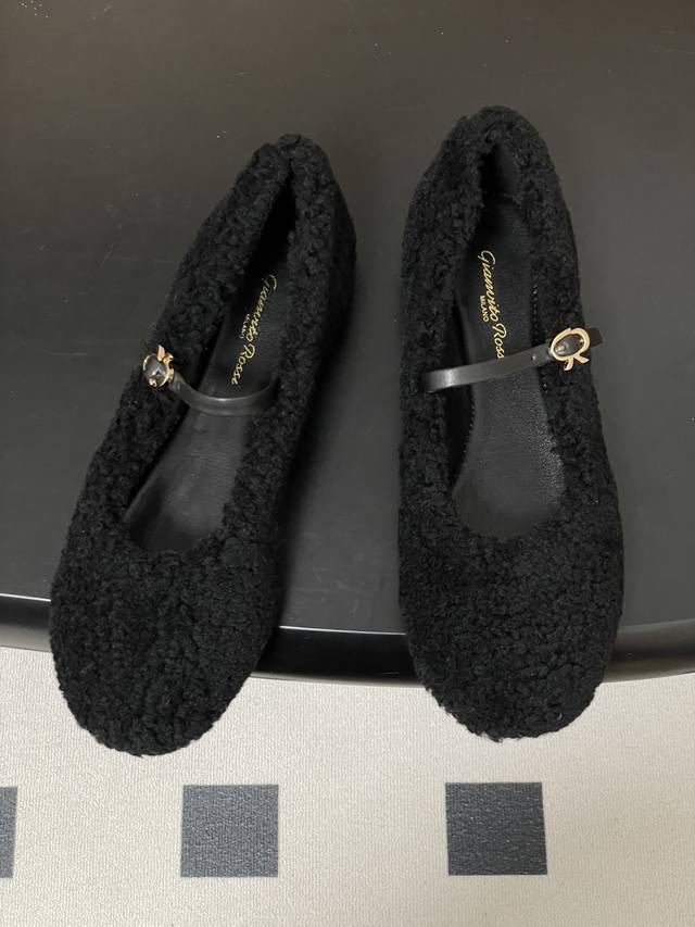 Gianvito Rossi 25 Autumn/Winter New Style Rossi Gr Lambswool Ballet Flats Thin Sole Super Soft Shallow Mouth Mary Jane Shoes Flat Furry Shoes Ddd When the elegance of Italian craftsmanship meets the gentle warmth of autumn and winter, these shoes, with the classic Mary Jane silhouette as their core and the leather lining as their soul, anchor their luxurious style with the iconic metal buckle. They blend the brand's deeply ingrained "minimalist luxury" with warmth, condensing the texture of each shoe through 60 handcrafted processes. The leather lining locks in warmth without feeling stuffy, and the fur embellishment is not bulky. Every step carries an elegant Italian flair, ensuring that autumn and winter elegance doesn't have to be "beautiful but freezing." They embody the elegance and gentleness of contemporary women in autumn and winter, making every step a warm encounter with Italian romance. Ddd Upper: Lambswool Ddd Insole: Sheepskin Ddd Sole: Open-mold rubber outsole Ddd Sizes: 35-39 40.41 Custom-made, no returns or exchanges Ddd