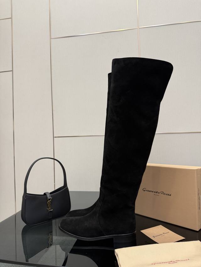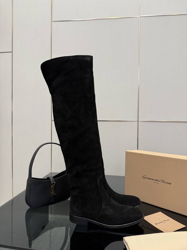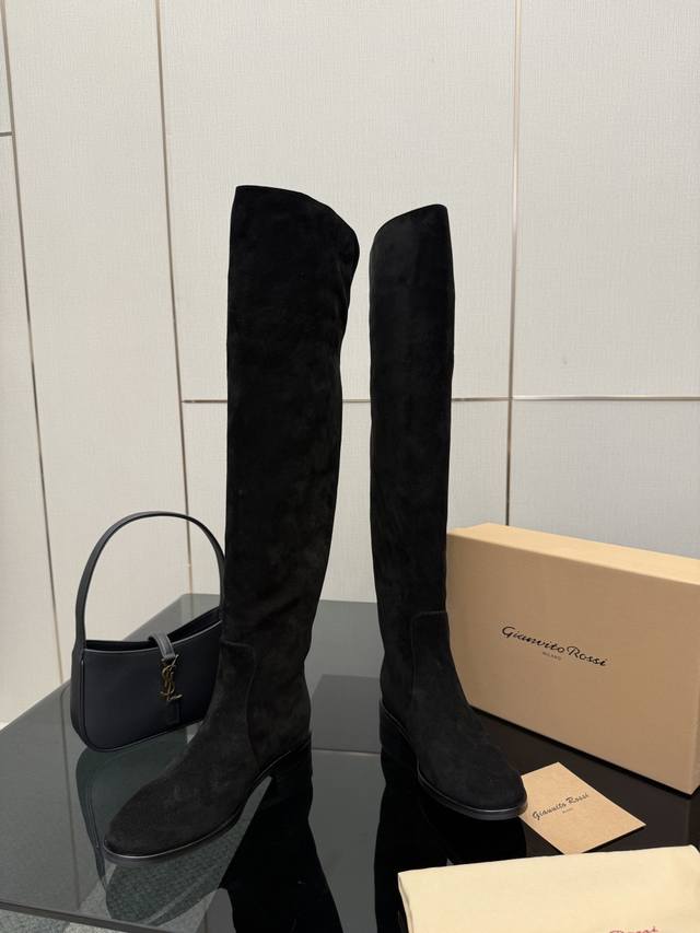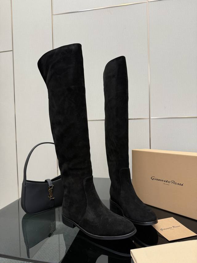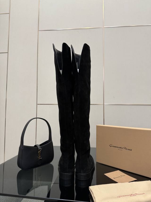 Gianvito Rossi high-heeled boots, made of suede, with a round toe design that elongates the legs, and a pleated shaft that flatters the calf. Brand new with box, sheepskin lining, Italian genuine leather outsole, comfortable and easy to walk in. Brand new, sizes 35-39, size 40.41, custom made.
