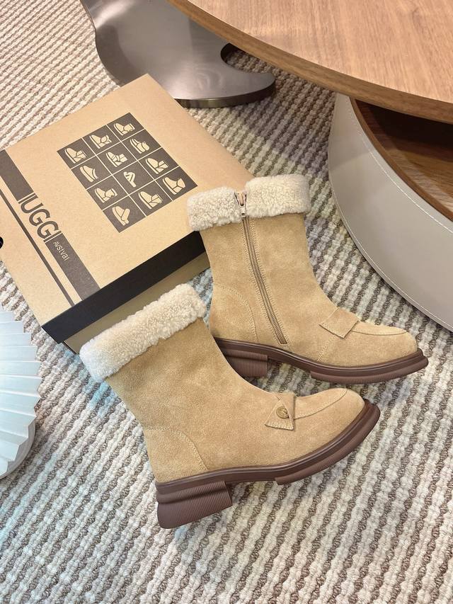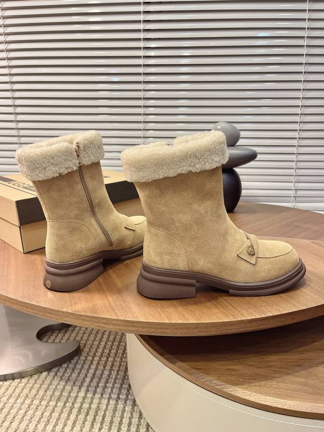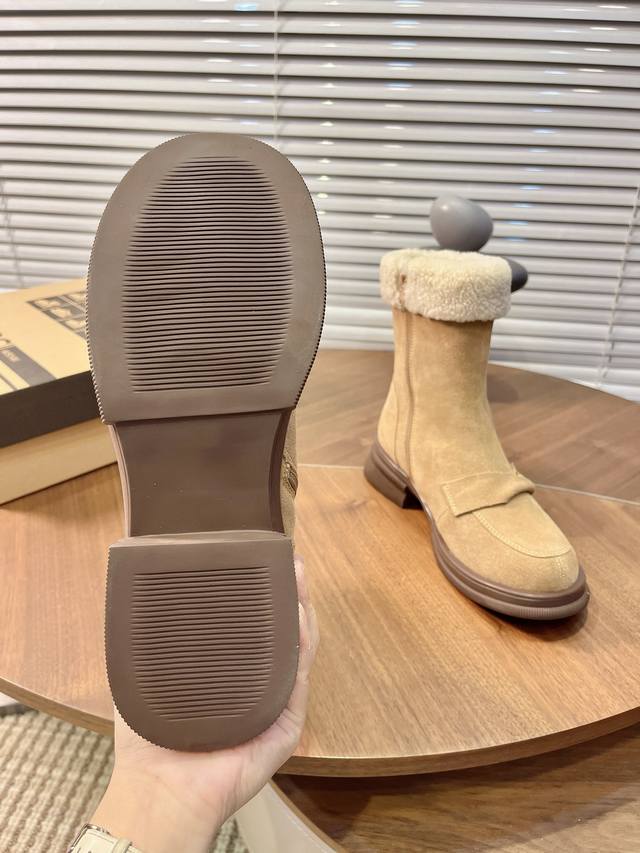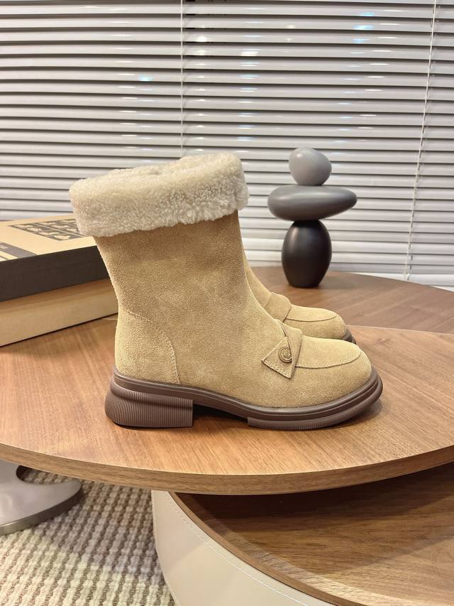 Gold Coin Curly Boots DDD "These boots perfectly capture the autumn/winter vibe~ DDD The texture of cow suede plus the lamb's wool collar is warm and luxurious, and they look amazing with a tulle skirt or jeans DDD Stepping on a vintage rug feels like wearing the gentleness of autumn on your feet DDD Sizes: 35-40 DDD