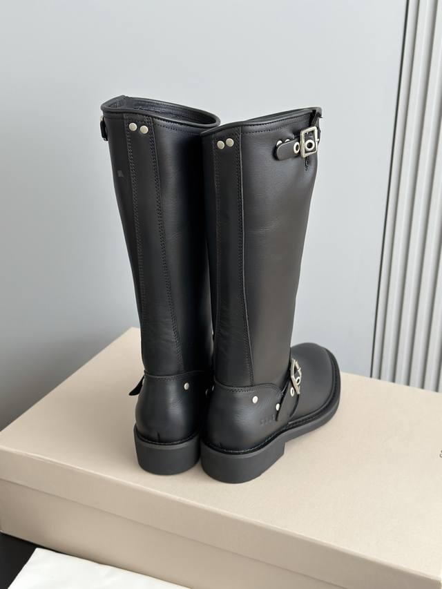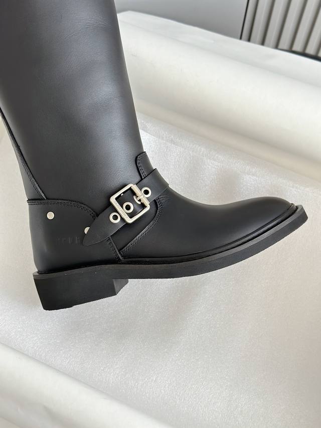 Made of high-quality genuine leather, with a delicate texture and durability, showcasing a good luster. These tall riding boots feature metal buckle elements, adding a retro and cool style; the clean-cut shape and moderate boot height provide a flattering effect on the leg lines.