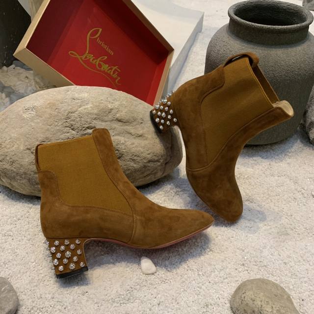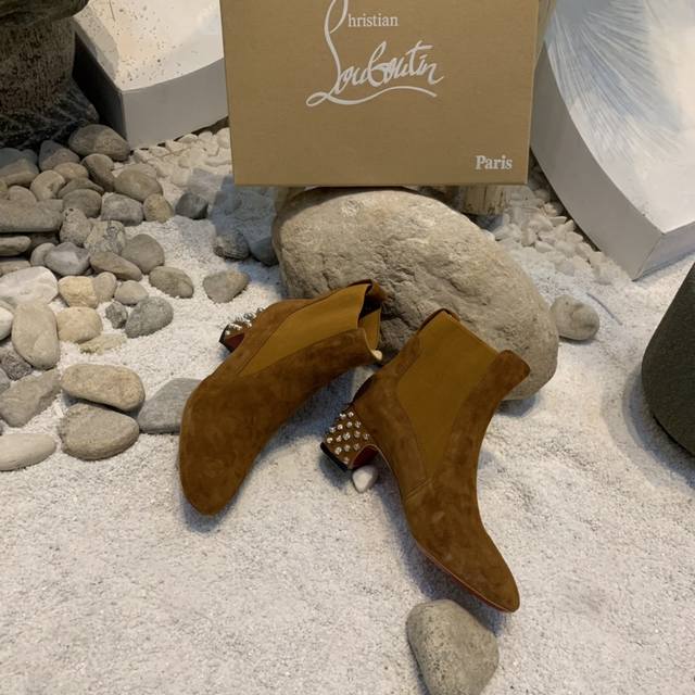 Suede Square Heel Riveted Chelsea Ankle Boots, Custom Made, No Returns or Exchanges. Original 1:1 last adjusted, perfectly elongated, with excellent lines. Comes with a high-end gift box packaging, high-end and elegant, exuding prestige... Material: Imported suede. Exclusive molded ABS material heel. Italian imported mixed sheepskin lining. Original Italian imported Ar1 top-grade genuine leather outsole. Sizes: 34-41 (34, 40, 41). Custom made, no returns or exchanges. Colors: Black, Dark Brown. Heel Height: 5.5cm.