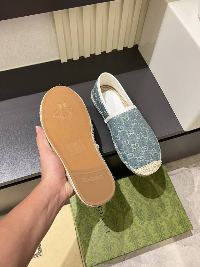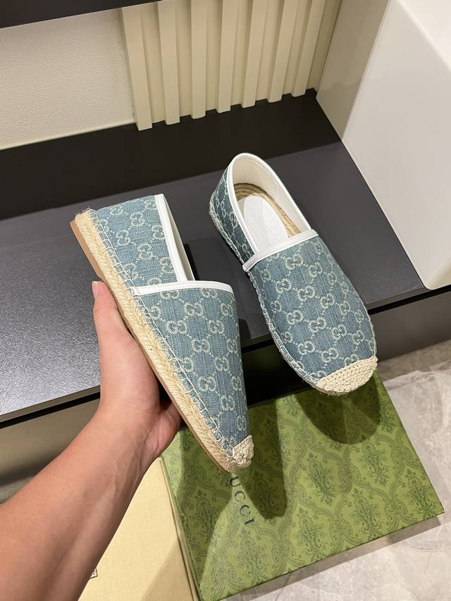 Guc*IG's newest espadrilles are here! 1:1 replica of the official website, top-tier sourcing. Excellent quality and workmanship. Made with 1:1 original materials, imported cowhide and 1:1 rubber, comfortable and breathable. The inner lining is made of imported full sheepskin, comfortable and breathable, exuding a powerful and stylish vibe. A must-have for trendsetters. Features a natural hemp rope outsole and raw rubber outsole for slip resistance and durability. After painstaking work and repeated adjustments, fully packaged. Sizes 38-44 are in stock; size 45 can be custom-made. No returns or exchanges.