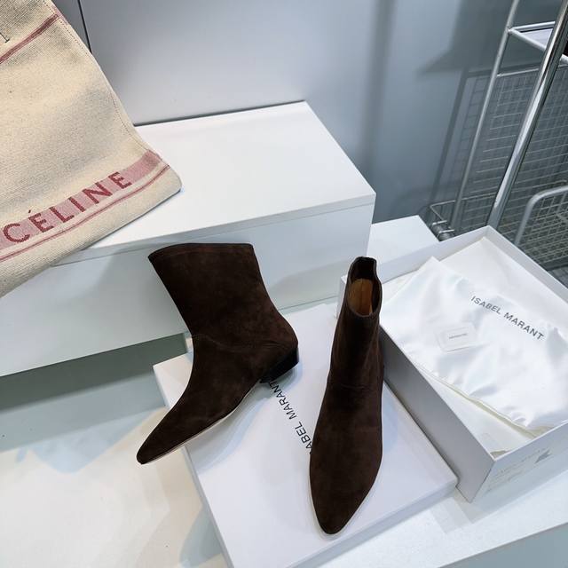 High quality factory boots! Top-quality Isabel Marant 25Ss autumn and winter simple pointed slip-on boots! A classic women's patchwork mid-length boot with a full family style. Standard European and American style, representing a brand that uses minimalist style to present a pair of boots. This simple boot is essential for a versatile style! The gray and military green are very high-end colors, the upper is high-merced cow suede, the boot body is super soft and comfortable, and the ankle height is just right. It can be worn in all seasons. It looks handsome and neat on the feet, and it takes the lazy style to the extreme. It is a fashionable item for cool girls.