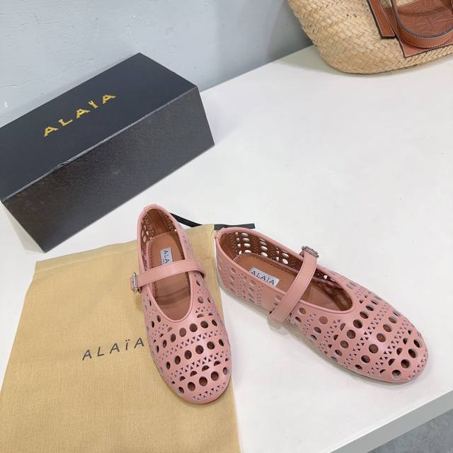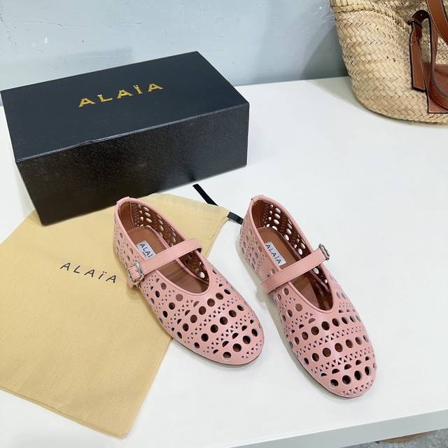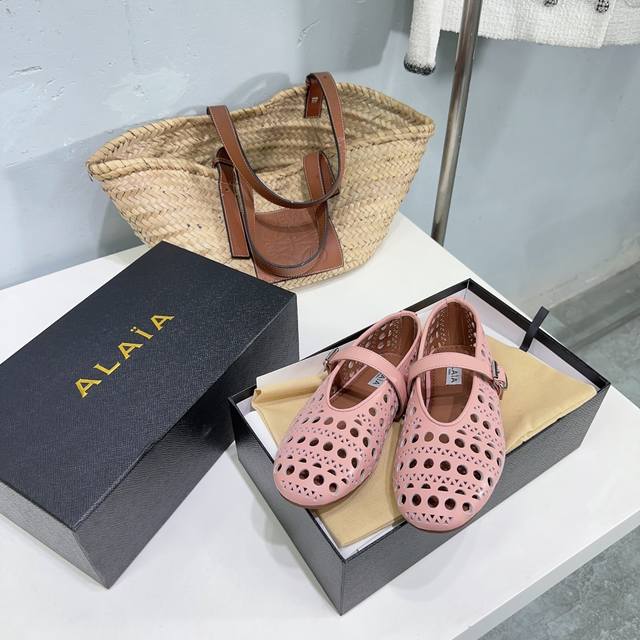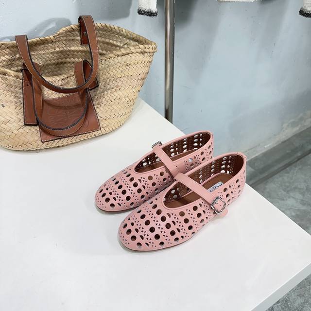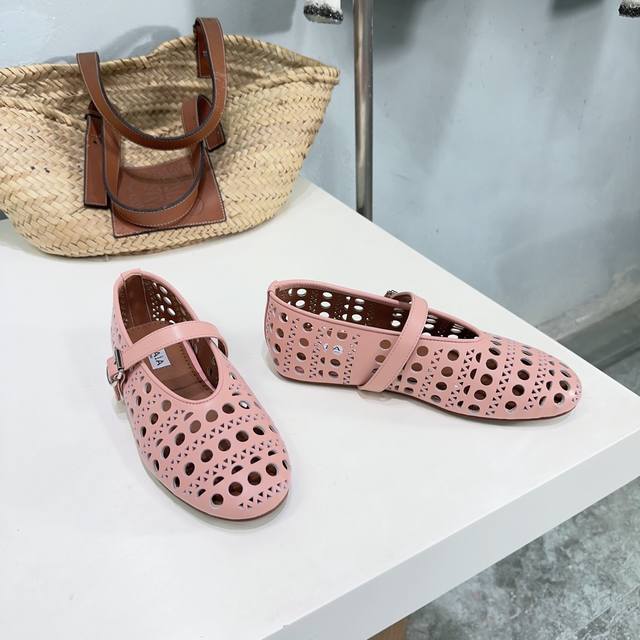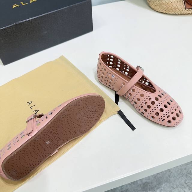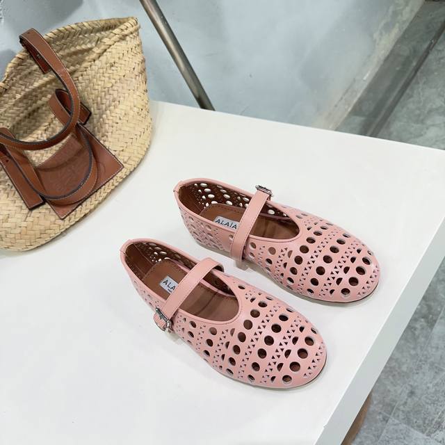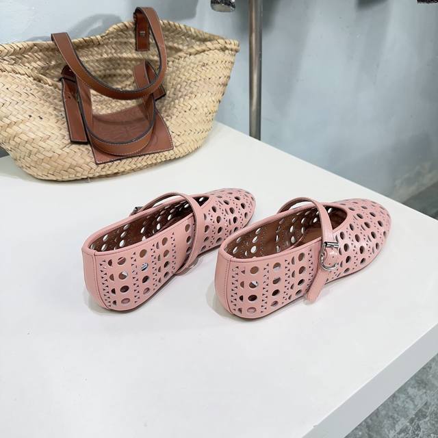 High quality factory delivery! Niche fashion brand Alaia 24 Spring/Summer hollow round-toe flat-soled grandma shoes, loafers, and single shoes! The latest spring/summer fashion show new series of flat ballet shoes! France's high-end first-line couture brand! The last craftsman in the fashion industry