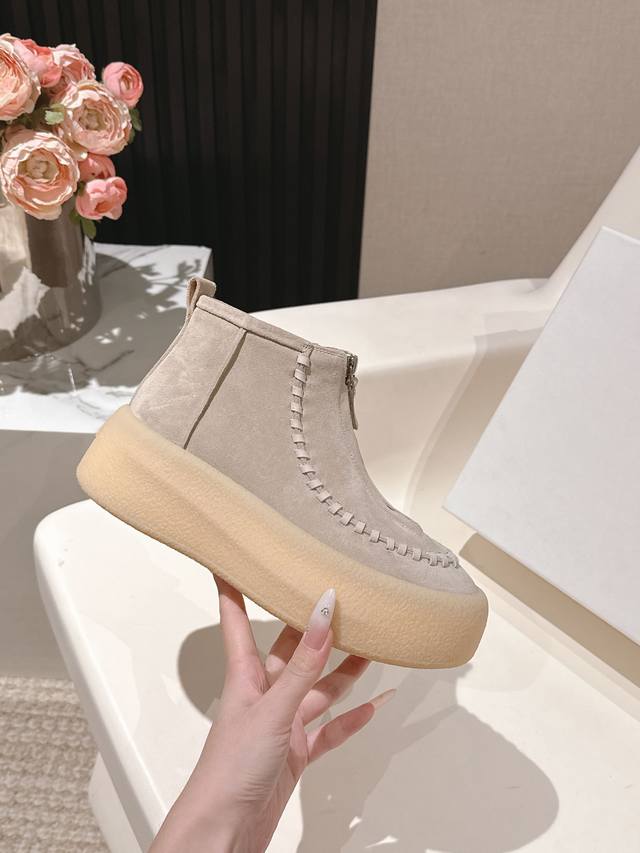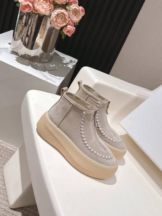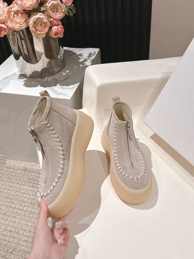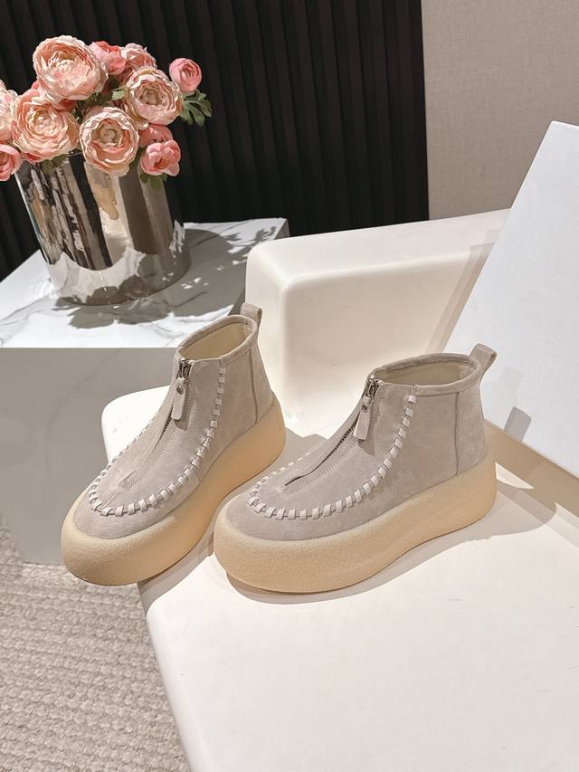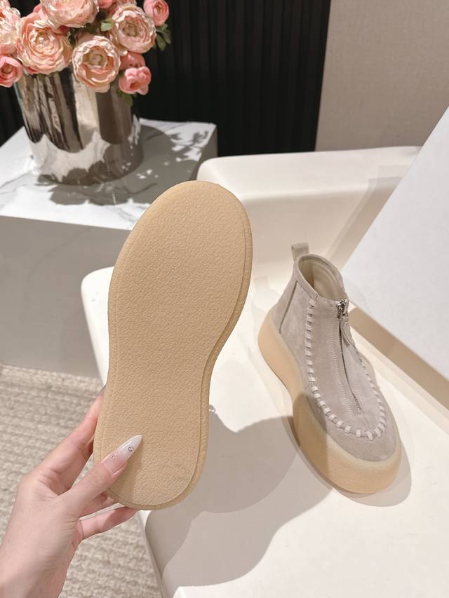 High quality factory delivery! Niche fashion brand The Row 2025Ss autumn and winter platform thick-soled front zipper short boots original purchase one-to-one last development! Many celebrity bloggers have demonstrated the front zipper design, a classic that never goes out of style! Simple and fashionable, super easy to put on and take off, and girls with high insteps don't have to worry at all, a blatant height-increasing artifact