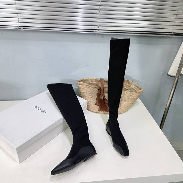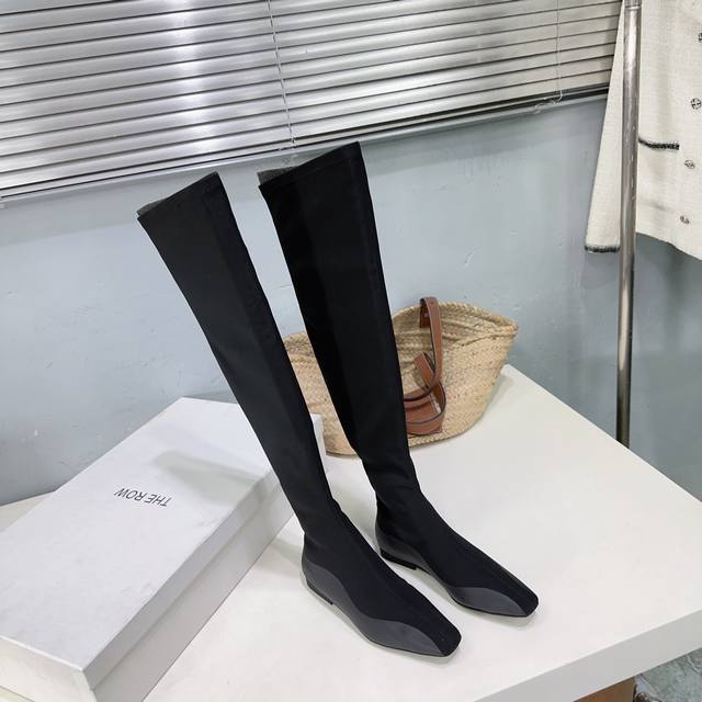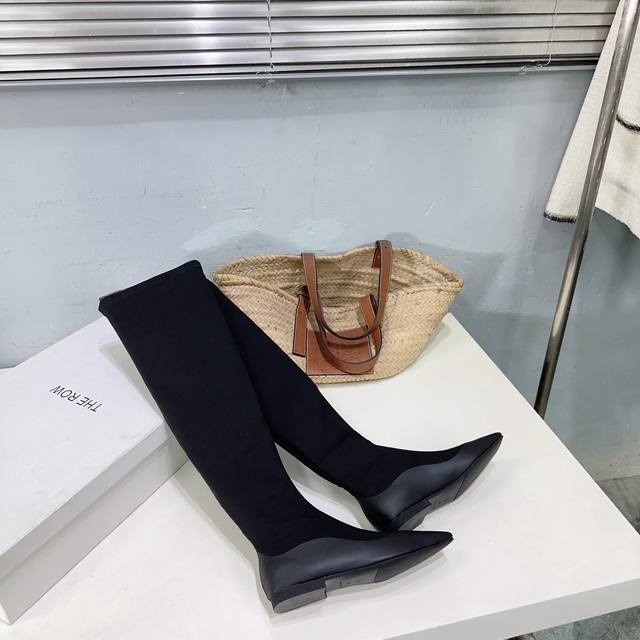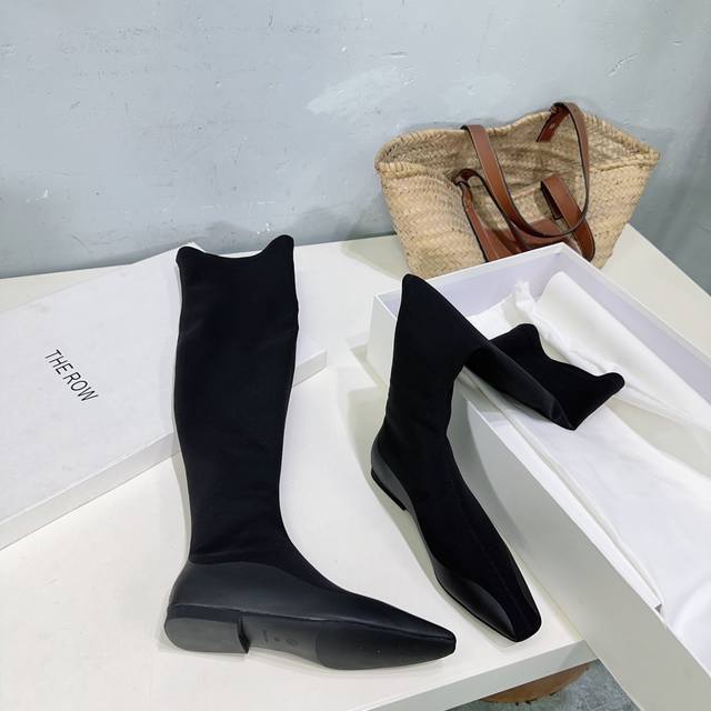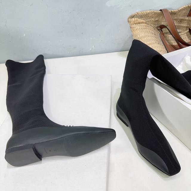 The Row 25Ss's latest autumn/winter hot-selling square-toe flat black warrior elastic boots! Flat ninja sock boots! Ballet flats among ankle boots! Simple and exquisite style, as always, super sexy and comfortable on the feet! Simple design, clean and smooth lines. Although there are not too many embellishments, they are really high-end and versatile. A top-quality sandal, breathtakingly beautiful, brightening up the entire autumn and winter!