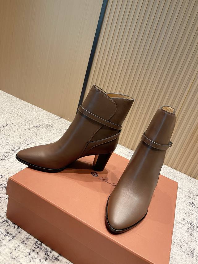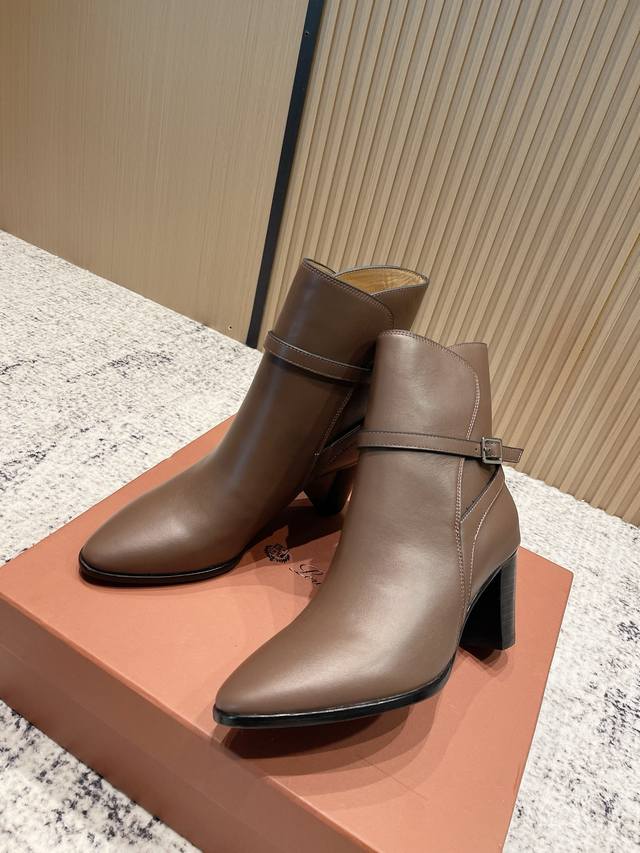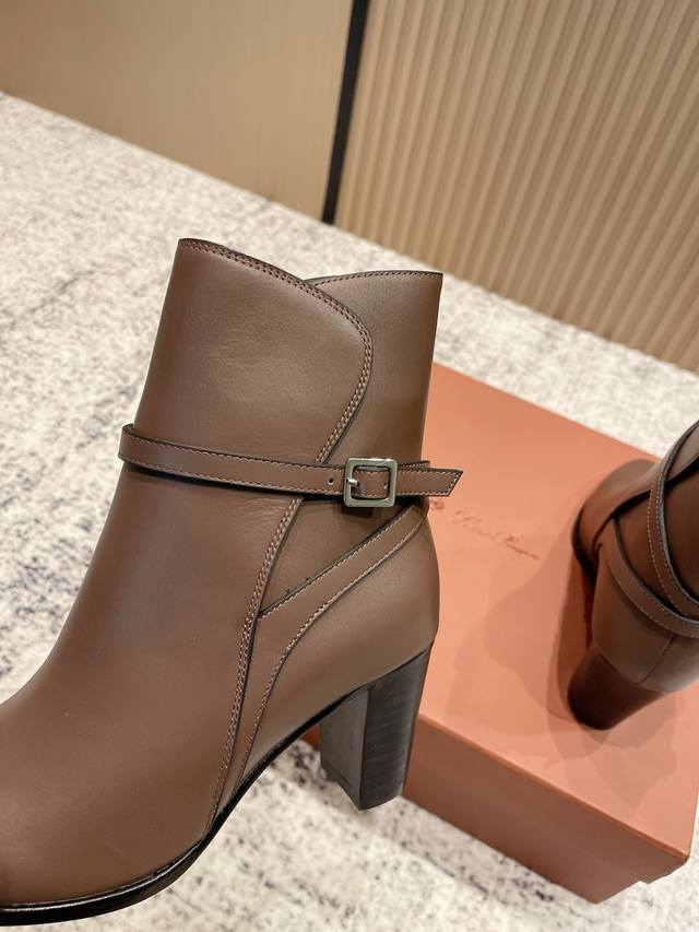 Niche fashion brand Loro piana Lss autumn and winter new thick-heeled ankle boots with pointed buckle high-heeled short boots!