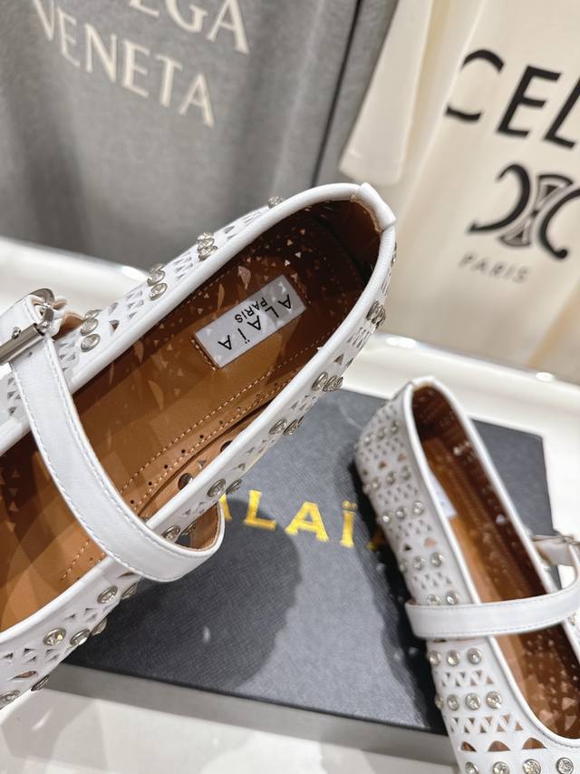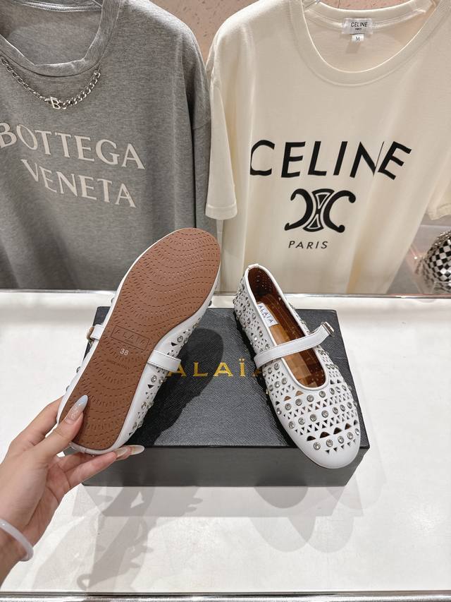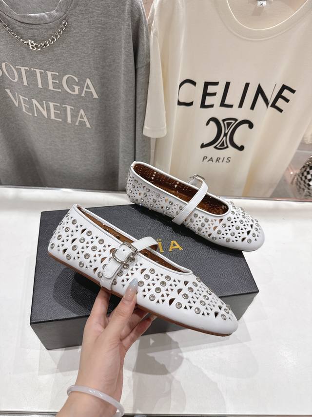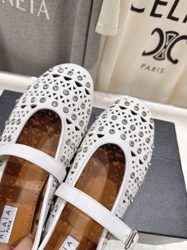 Exclusive new product Alaia F016 2025Ss catwalk style diamond flat Mary Jane ballet shoes, a very popular flat shoe recently