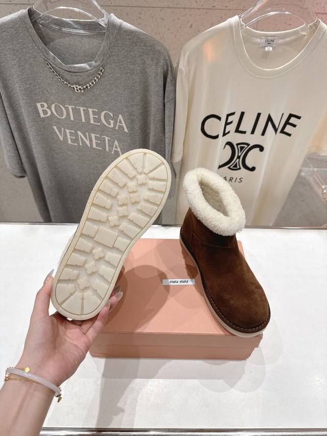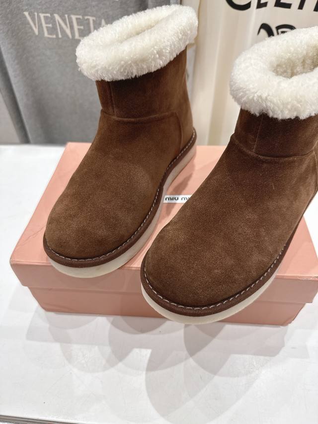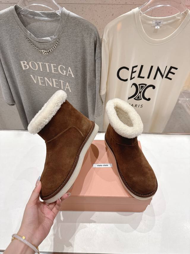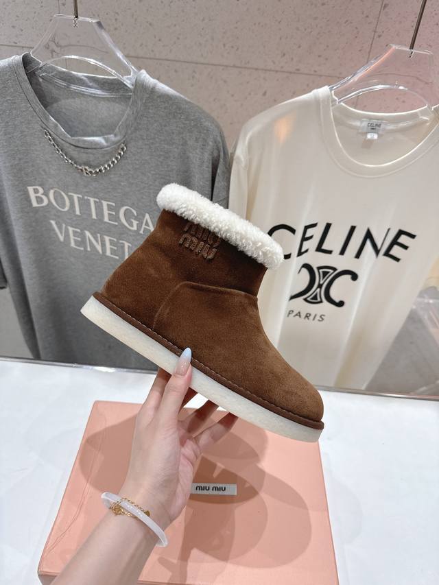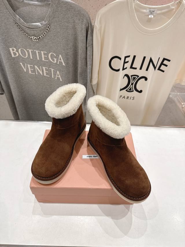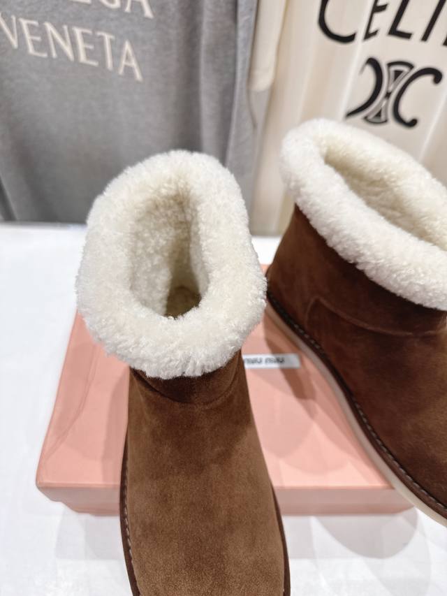 Miumiu Miu Miu 2025Ss autumn and winter catwalk model F027 wool short boots snow boots furry shoes