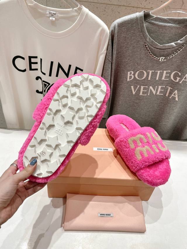 Miumiu Miu Miu 25Ss new star-style flat home fur slippers, appeared on the covers of major fashion magazines, you will not regret buying them if you close your eyes. They are very comfortable and super comfortable. Zp custom fabric