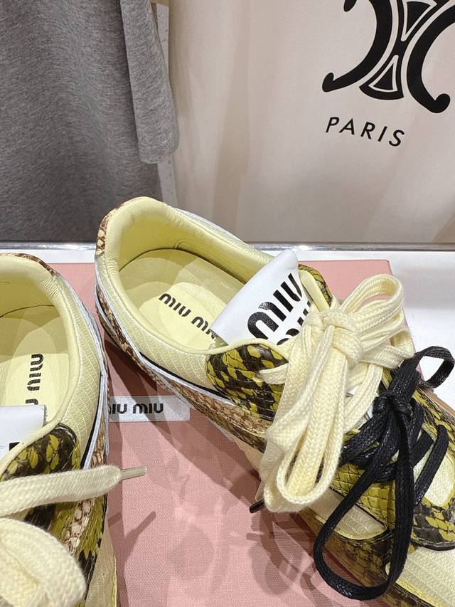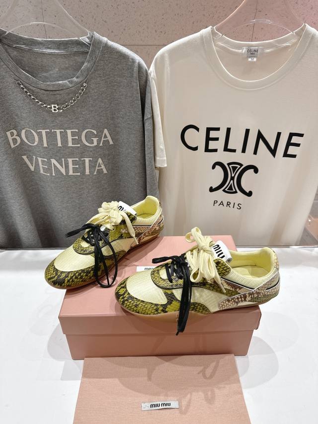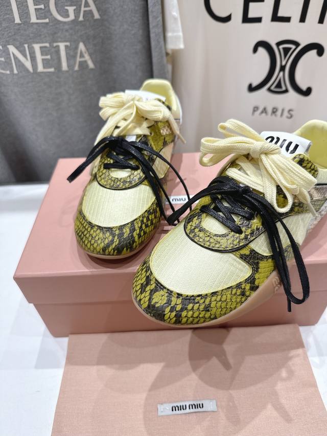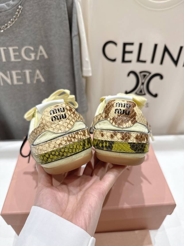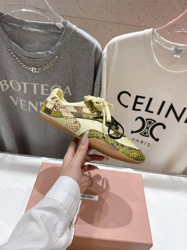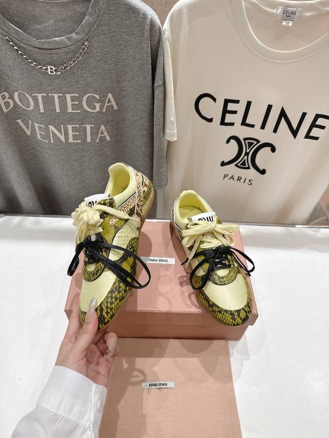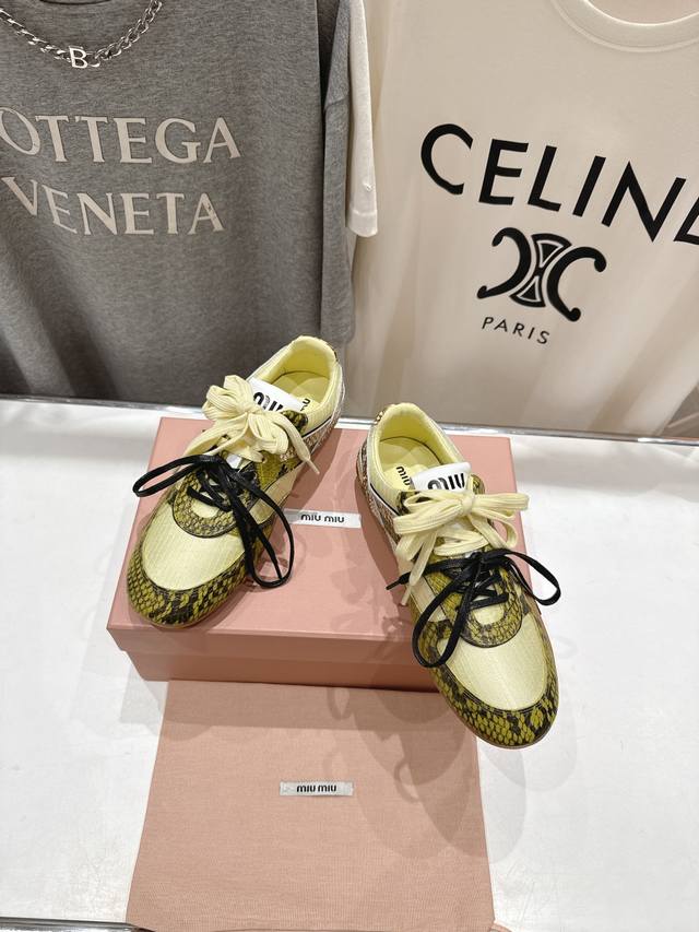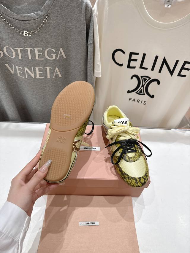 High Version Factory Release Miu Miu 2025 Ss Early Spring New Snake-Print Lace-Up Vintage Casual Shoes ~ This Year's Featured Style, Vintage-Inspired With A Retro Finish, Simple Yet Sophisticated, Easy To Pair, Extremely Comfortable To Wear, A Must-Have For The Year! Upper: Imported Snake-Print Leather
