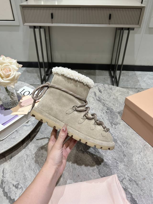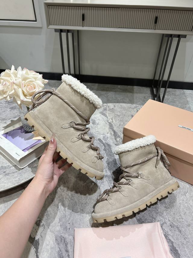 has the inherent quality of light luxury, a warm tone, and comfortable material that you can't put down. High-quality waterproof, non-slip, and super warm, the lace-up decoration on the upper adds a full sense of fashion!