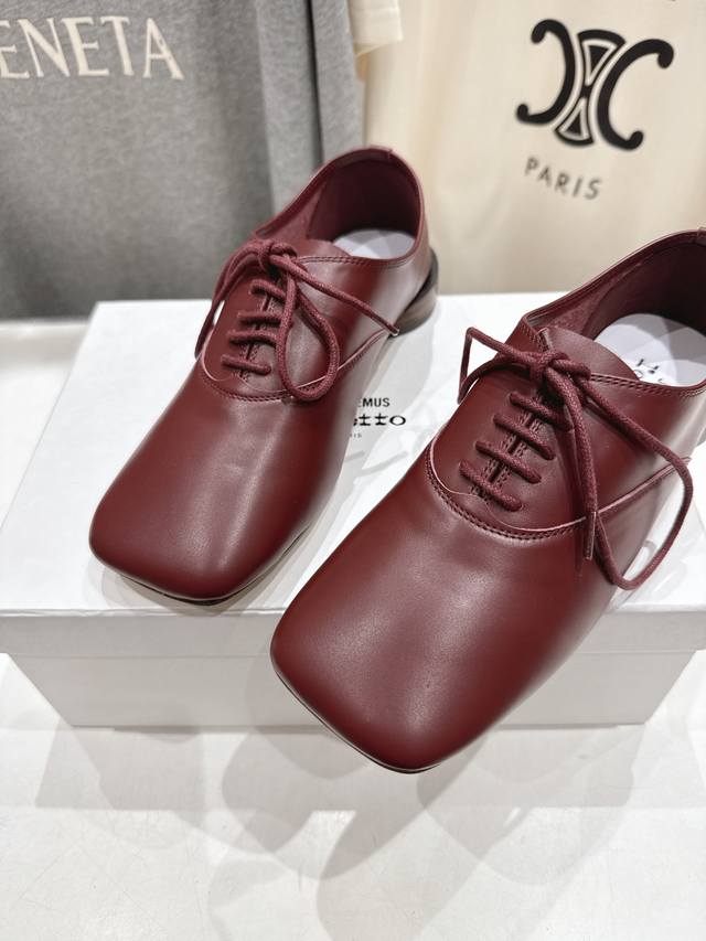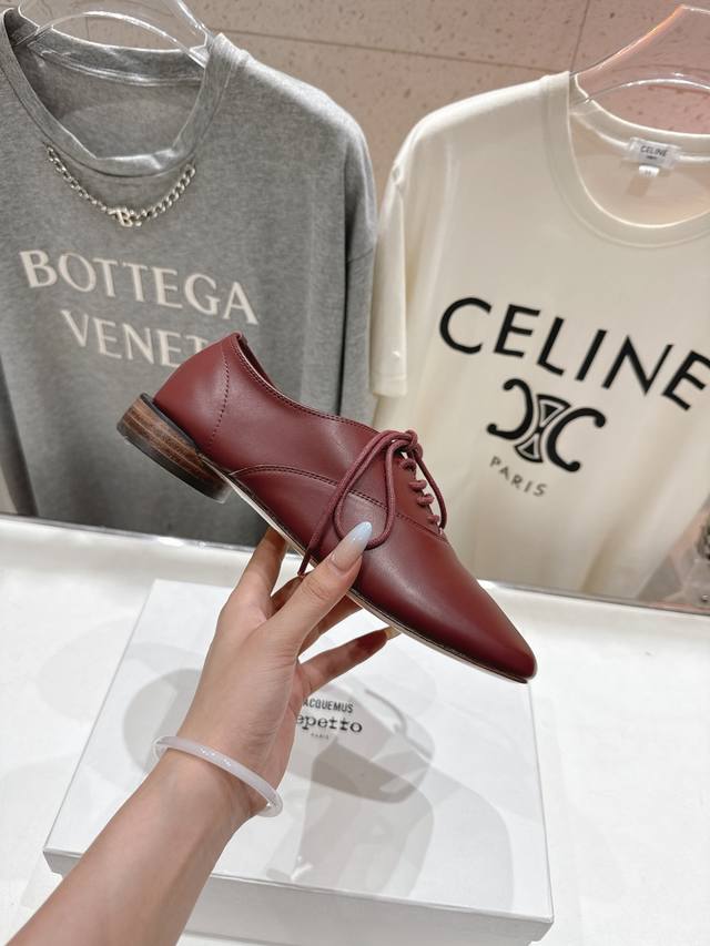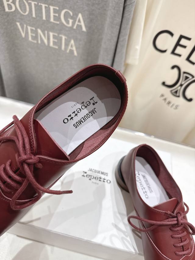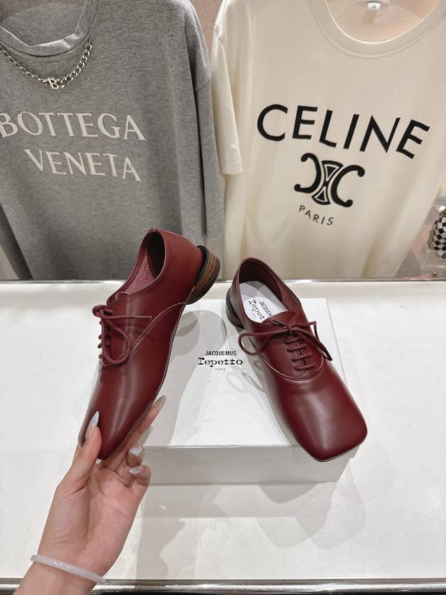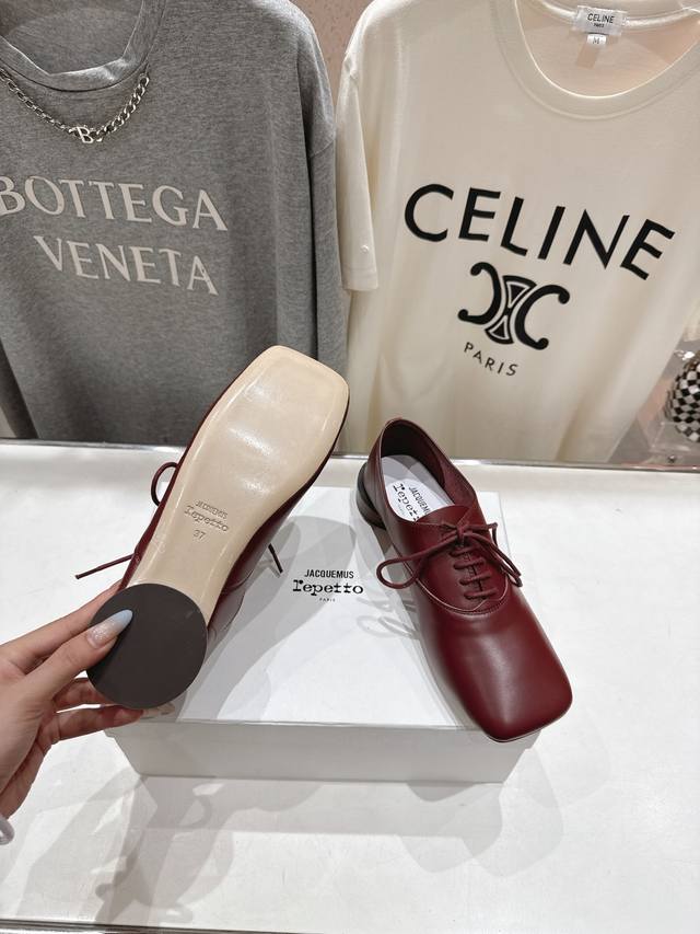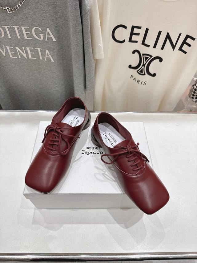 High-end factory release! Acquemus X Repetto F012 2025Ss new collaboration, lace-up square-toe casual shoes. Comfortable and slimming, these shoes are perfect for a feminine look, and they go with everything! Ladies, go! Limited edition, limited quantities available. Upper: Original imported calfskin. Lining: Imported sheepskin. Outsole: Genuine leather imported from Italy. Sizes: 35-40. Custom sizes (40) are non-refundable.