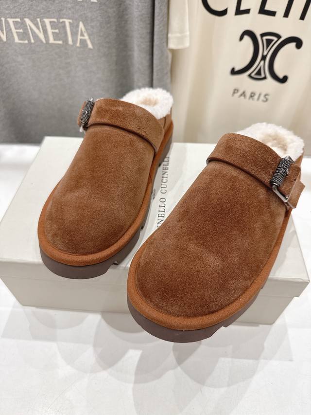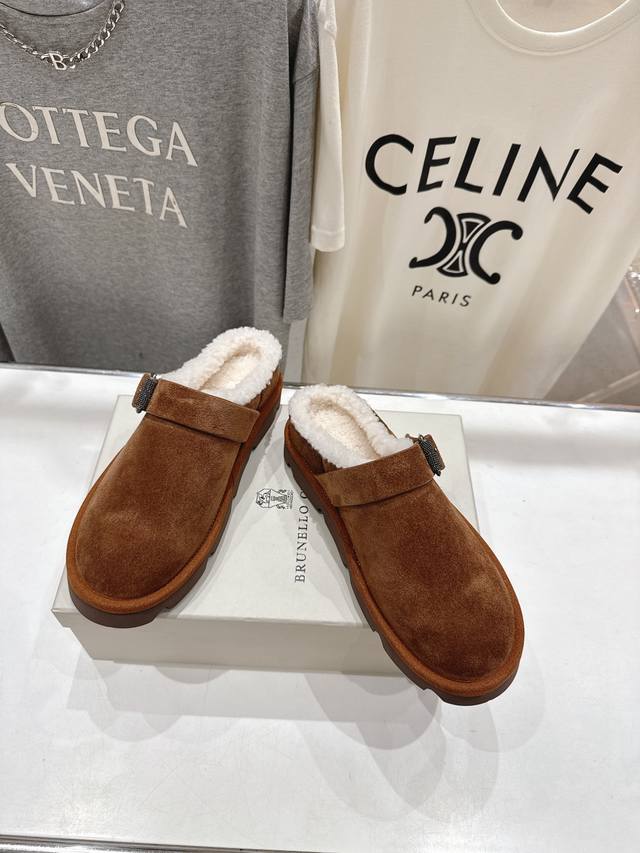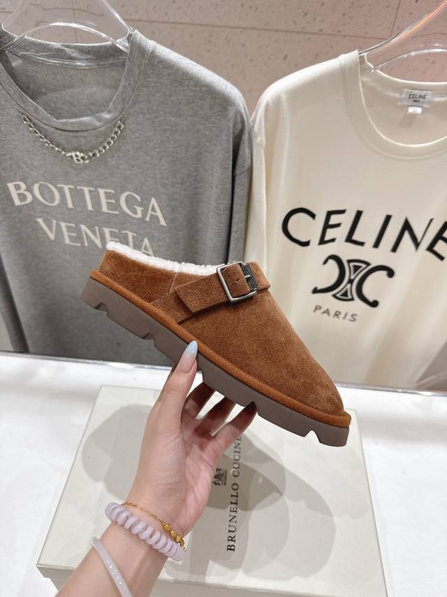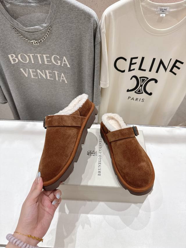 Brunello Cucinelli new BC autumn and winter half-covered fur slippers, high-end market version