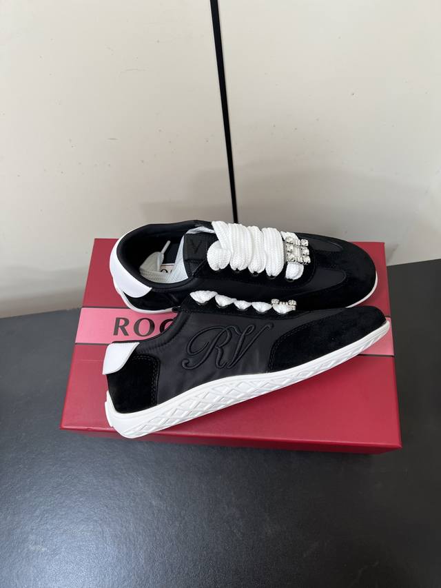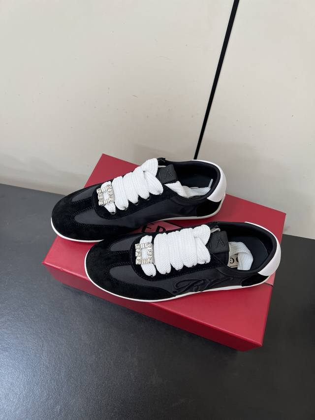 High-end Roger Vivier 2025 new rhinestone buckle square buckle casual shoes, small square buckle Dexter shoes