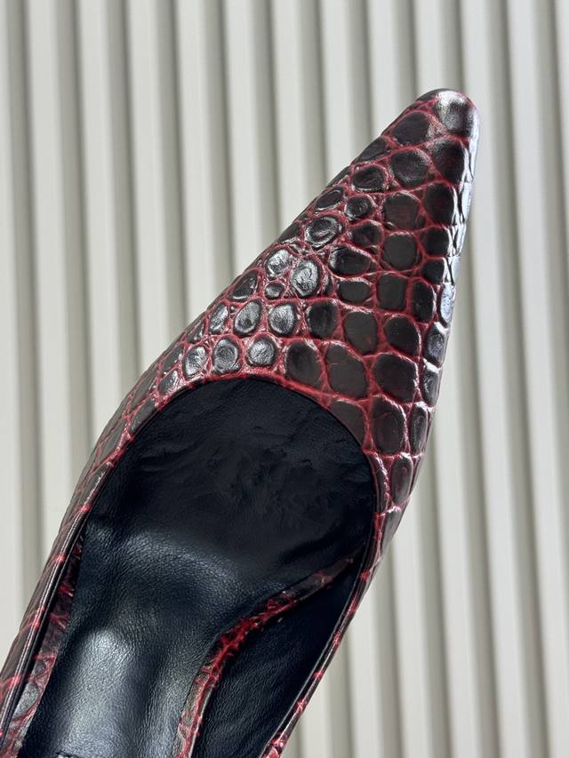 High-quality Alaia 2025 new chunky heel pointed toe single shoes (retailer quality). Upper: Calfskin with embossed crocodile pattern for a more luxurious feel. Heel height: 9cm. Sole: Italian imported cowhide. Size: 35-41 (40/41 sizes are custom-made and non-refundable).